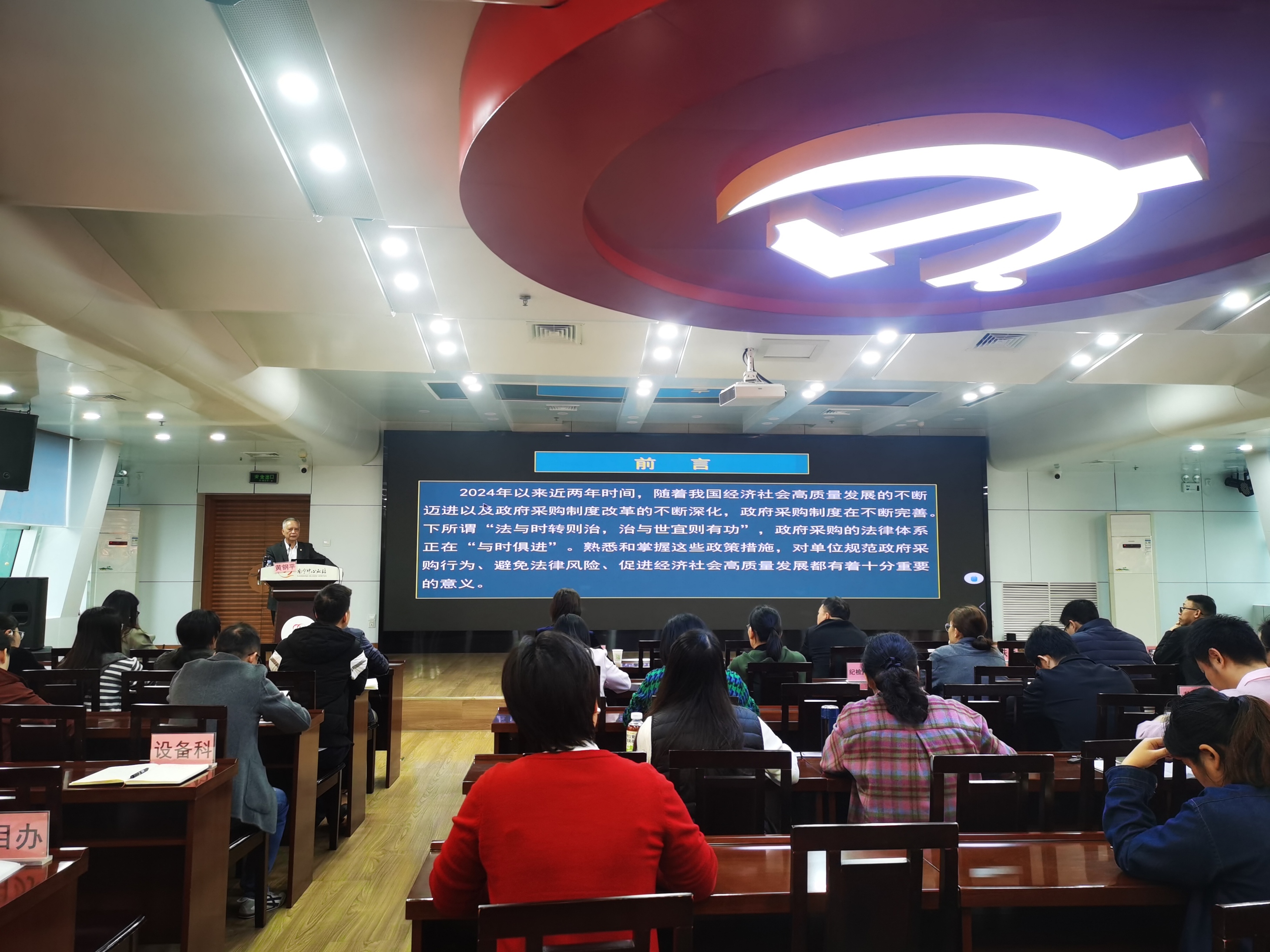 为加强政府采购管理,提升人员业务素养与实操能力,确保采购工作规范、高效,2025年12月11日,南宁中心血站举办了政府采购业务知识专题培训。本次培训邀请广西政府采购联合会会长黄钢平担任授课讲师,南宁中心血站站领导、中层干部、采购专家成员及采购相关工作人员约70人参加培训。