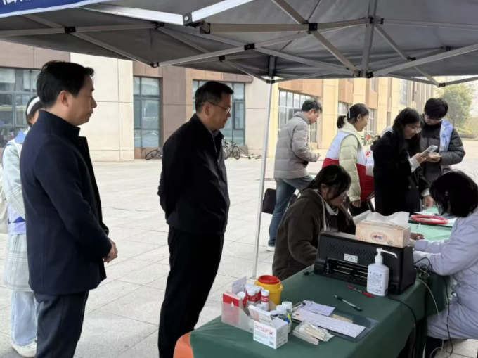 会后,我中心一行前往校园献血点,看望正在服务的志愿者及参与献血的师生。范主任细致询问献血组织流程、志愿服务体验及保障措施,对师生展现出的公益热情与社会担当表示高度赞赏,鼓励青年学子继续传递爱心,以实际行动践行社会主义核心价值观。