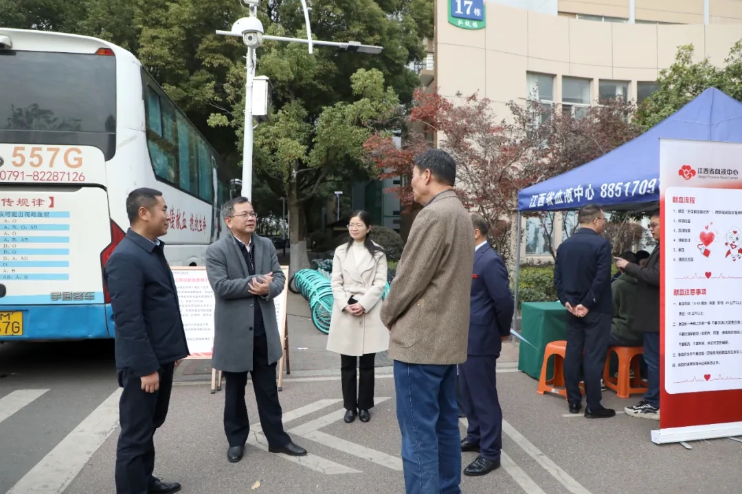12月5日,第40个国际志愿者日,“奉献、友爱、互助、进步”的志愿精神在赣鄱大地涌动不息。江西科技学院开展无偿献血宣传周活动,当日下午,校党委书记江延湖,校党委副书记、副校长闵桂林,校党委副书记、纪委书记夏拥华,江西省血液中心党委副书记、主任范为民,党委委员、副主任吴芬走进校园流动献血点慰问参与献血的师生,向他们致以诚挚敬意。