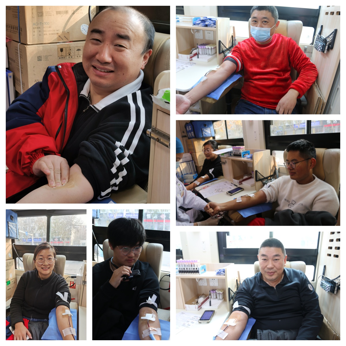 活动组织者赵海斌是位无偿献血者,也是临床用血费用减免受益者,曾经为自己和母亲减免血费近千元,他用自己的亲身经历向同事宣传我市“一人献血,全家受益,一次献血,终身受益”的无偿献血政策。路君伟坚持献血24年,累计献血量高达23400毫升,曾两次荣获“全国无偿献血奉献奖金奖”,60张无偿献血证见证了他的无私和担当。他说:“无偿献血是一项利国利民的公益事业,能够通过自己的一份热血帮助他人、挽救生命,是一件非常有意义的事。”卜银佗大学时期因体检未达到献血标准未能成功献血,今天终于得偿所愿用热血为社会贡献了自己的力量。