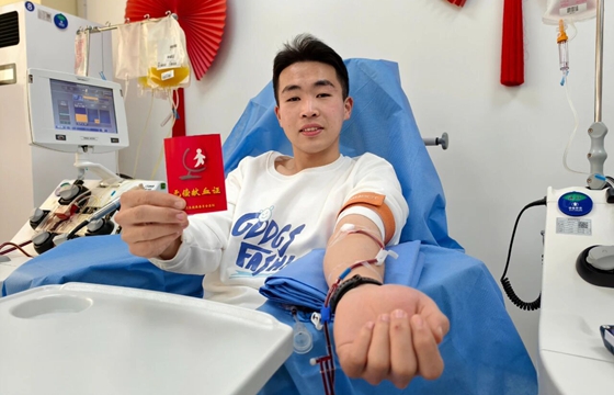 赵文豪从小就有一颗热心肠,每当老师需要帮忙,他总是将手高高举起,每当同学遇到困难,他总是愿意付出自己的时间精力帮助他人。偶然间,他在手机上刷到“一次事故后,市民排队献血挽救他人生命”的新闻视频,“原来普通人也能用这种方式帮助他人啊!”那一刻,献血救人的念头在他心里悄悄发了芽。一满18岁,他立刻在家乡青岛完成了人生第一次献血。那天,他从血站工作人员口中了解到好多普通人坚持献血的故事,胸中感到一股温热的暖流在升腾,他暗下决心:“这件事,我要一直坚持做下去!”