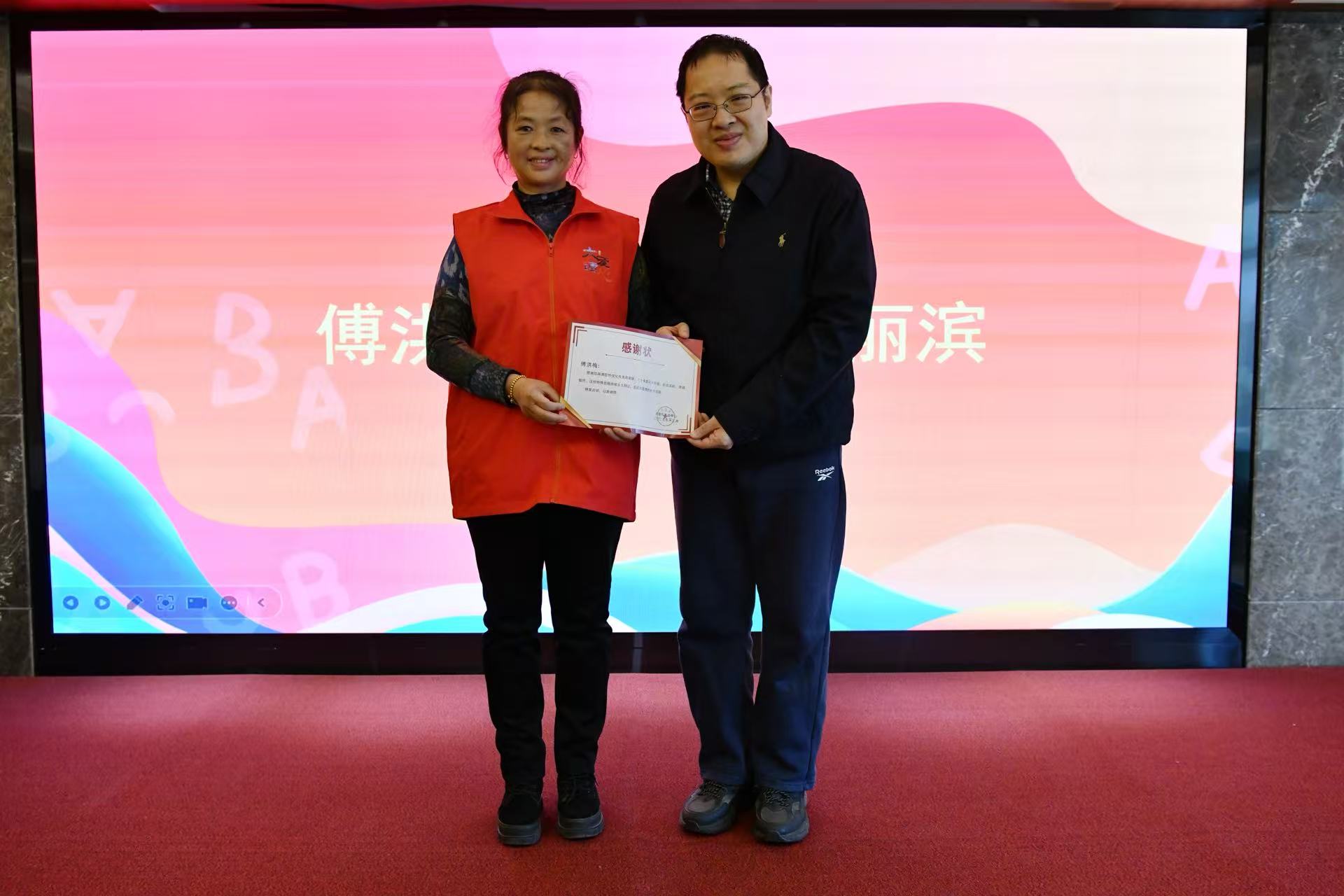 市红十字会宣传部部长刘燕为杨秀芝、辛立荣等在2025年志愿服务中表现突出的优秀志愿者代表颁发感谢状,感谢他们圆满完成各项志愿服务工作。