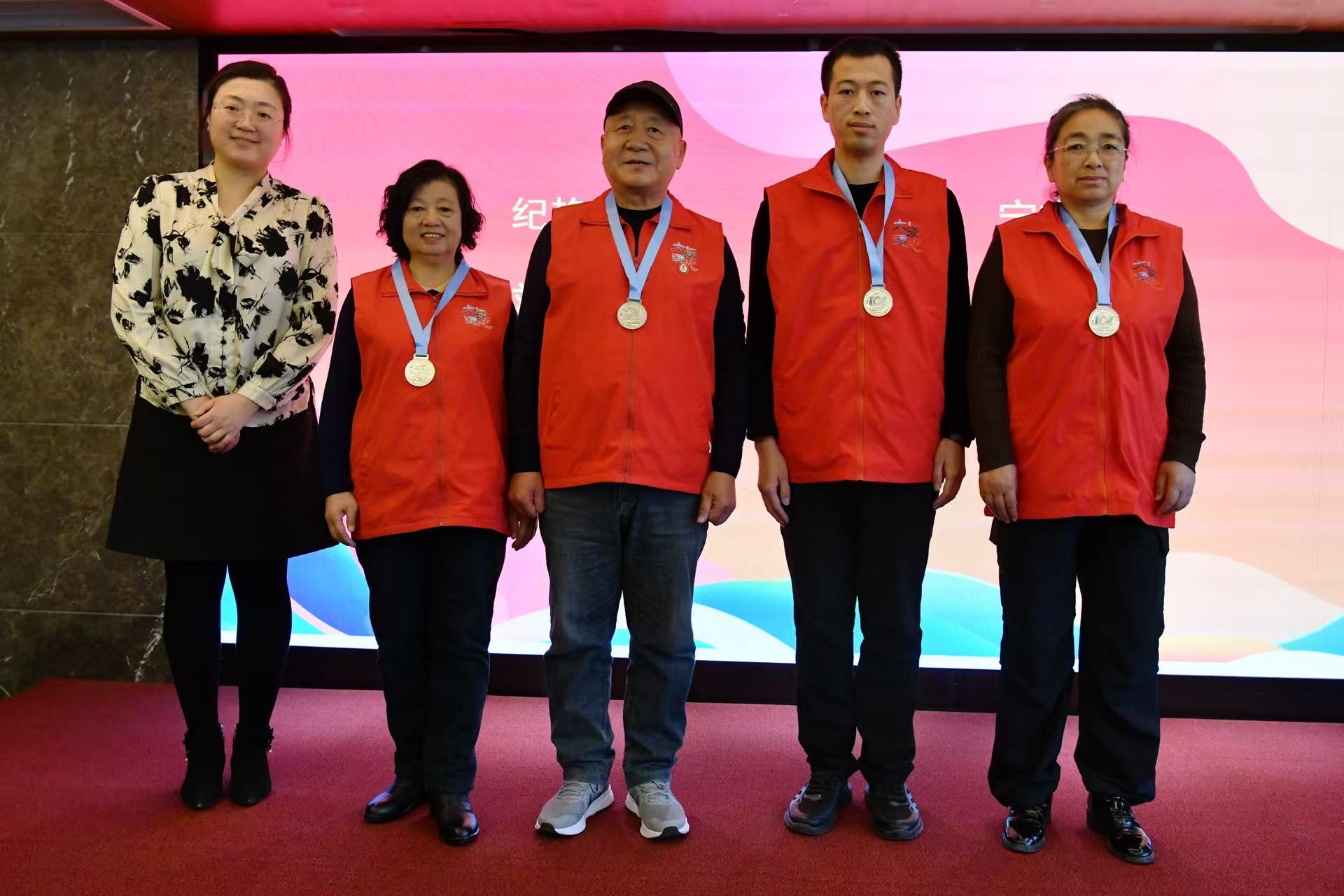 市委宣传部文明培育处副处长周国颜为李全广、刘玉琴等志愿服务10年以上的队员颁发入队10周年纪念章,致敬他们在公益路上的执着付出。