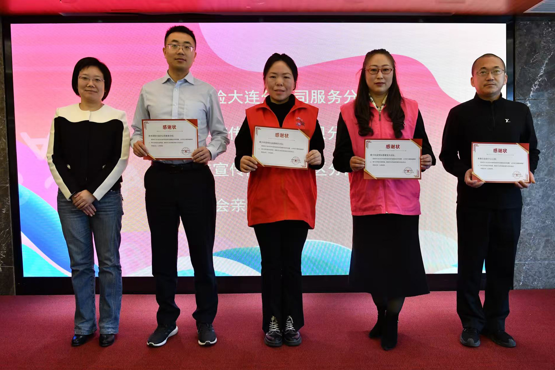 市红十字会赈济救护部副部长尹少芳为民生保险大连分公司服务分队、青少年宣传队慈爱宝贝分队、青少年宣传队金普新区分队、慈善总会亲子义工班等四支服务分队颁发感谢状,感谢他们的队伍在过去的一年中积极参加各类无偿献血宣传招募活动,以热忱凝聚爱心,用行动传递生命希望。