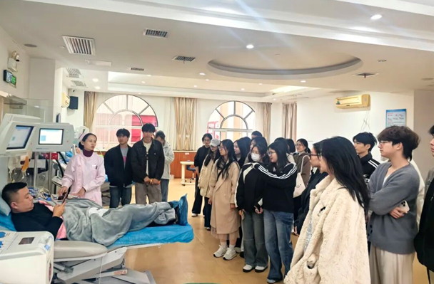 在血站科普馆,学子们的探索之旅正式拉开帷幕。讲解员结合图文展板、互动装置等丰富载体,生动讲解了血液的生理知识、无偿献血的发展历程、临床用血的重要意义以及献血前后的注意事项。随后,学子们分组走进供血科、机采科和成分科等核心业务科室,近距离感受血液从采集到制备、储存的全流程。