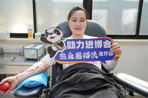 张女士,上海荣泰健康科技股份有限公司,2006年开始参与无偿献血,累计献血18次6600ml。她说:“每年进博会献血成了我的习惯,想到自己的血能帮到需要的人,心里就暖暖的,能尽份力特别开心。作为特殊血型拥有者,能在进博会参与应急献血特别有意义,每一次伸出手臂,都像给需要的人递去希望,这份生命接力的温暖,比什么都珍贵,希望更多人加入,让爱传递得更远。”