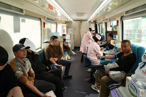 院内,献血车靠墙摆放,车下排起长队。队伍中有身着制服的干部职工,也有穿着家居服的附近居民,大家在院内晒着太阳,分享起自己奉献爱心的感想,欢声笑语和温暖阳光一同充满了这个小院。