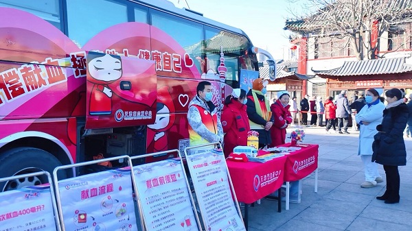献血车开进天津新闻广播“国潮新年市集”