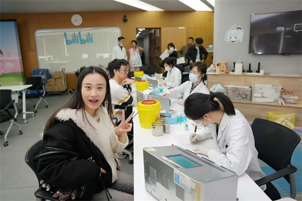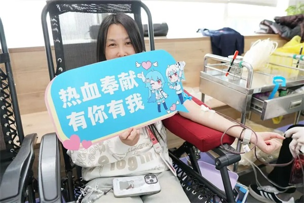第一次献血的仇同学,献完200ml后依然精神抖擞。他幽默地表示:“刚才看着自己的血液流入血袋,感觉像是在进行一场生命的‘数据传输’。我们平时用代码互联世界,今天是用热血连接生命!”作为第一次献血的“萌新”,他坦言最初有点怕针头,但想到自己的血可能会救回一条命,瞬间勇气值拉满。