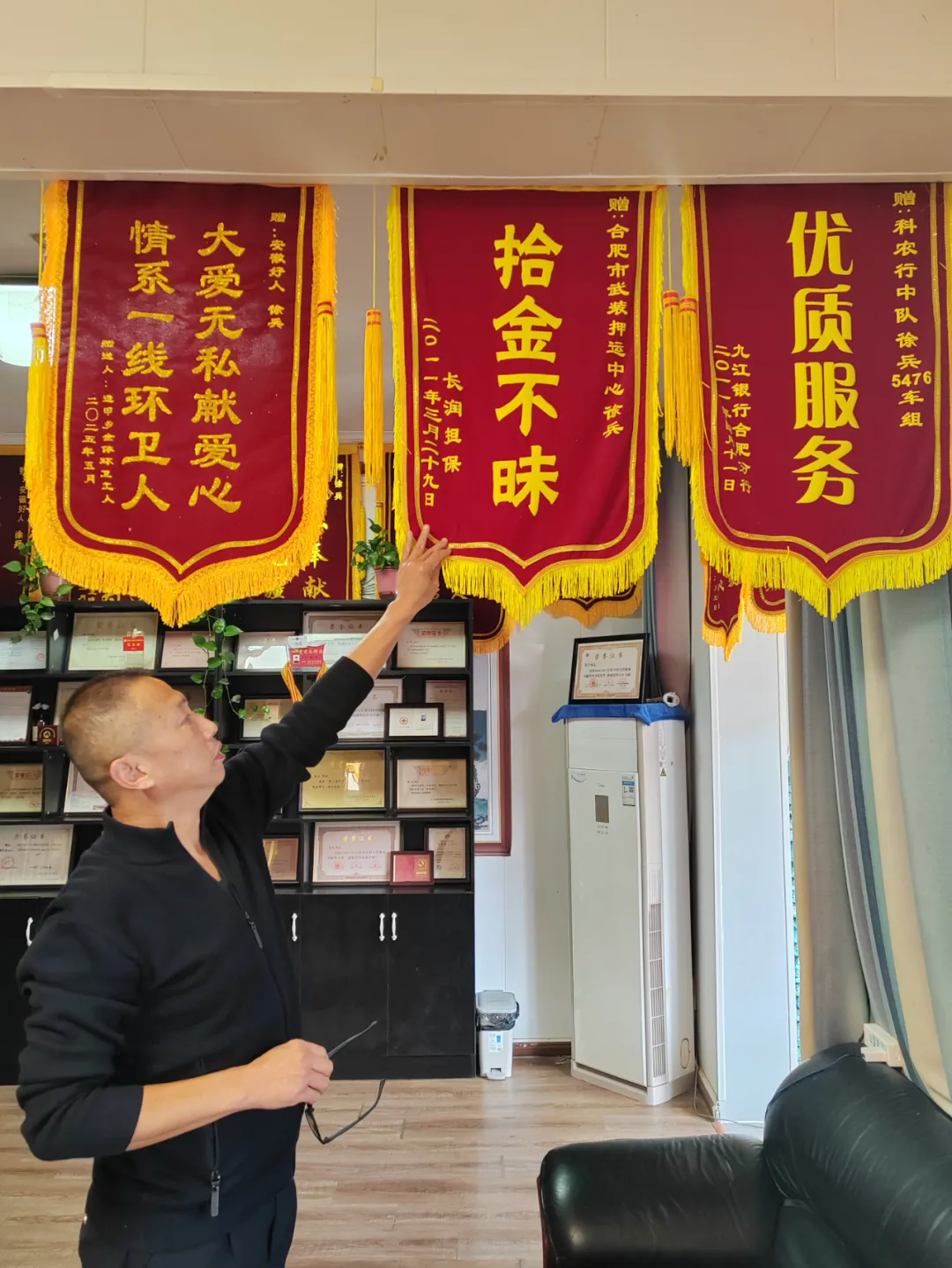 走进徐兵的家,仿佛走进了一个“锦旗博物馆”,每一面锦旗背后,都藏着一个动人的故事。