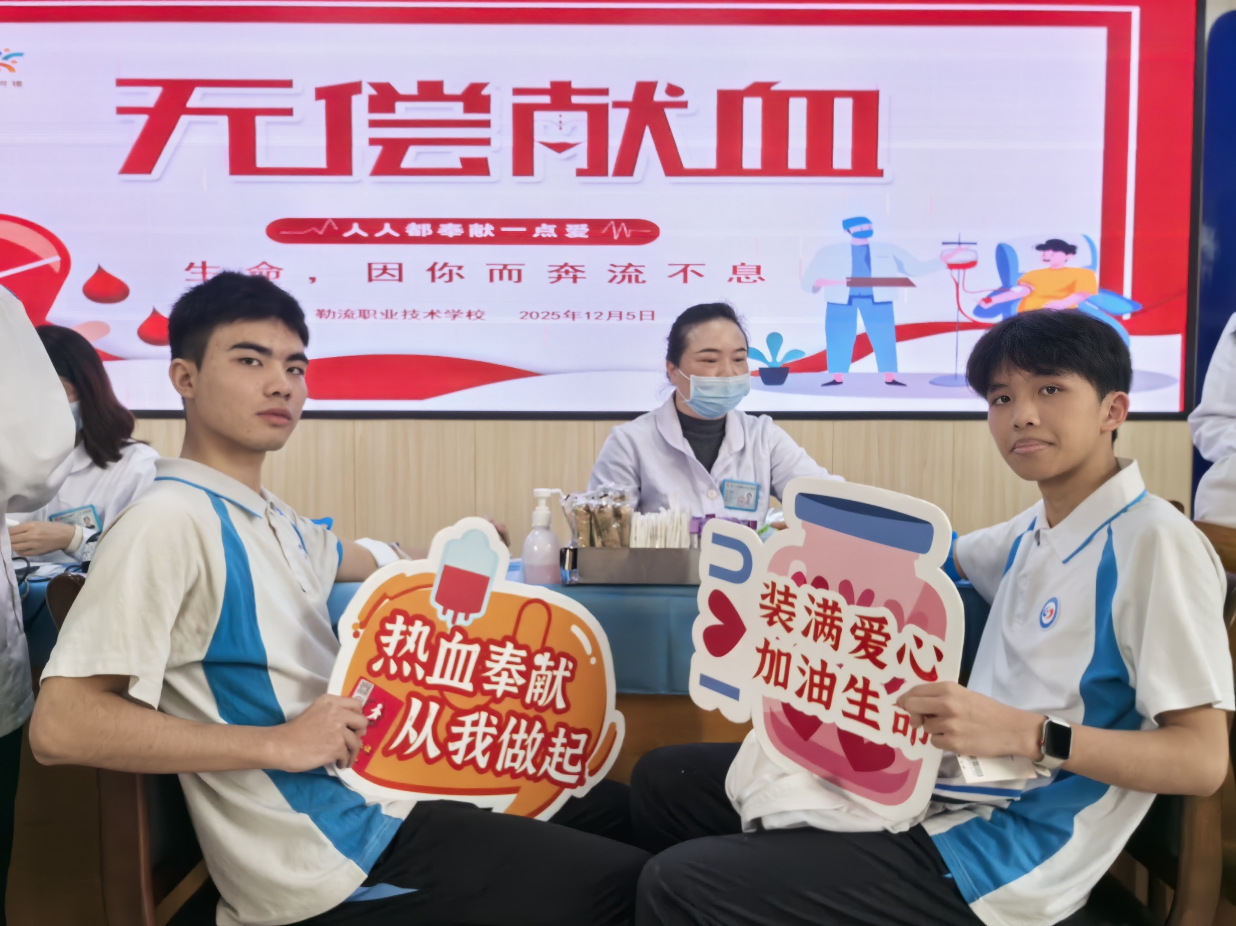 “看到老师这么坦然,我的紧张感就少了一大半。”首次献血的小林同学说。在魏老师的鼓励下,许多第一次献血的同学勇敢挽袖。在血站工作人员的指引下,同学们完成登记、体检、采血等流程。整个现场秩序井然,爱心的暖流在师生间传递。