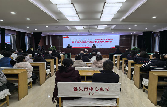 12月30日,包头市中心血站党总支召开全站干部职工大会,站党总支书记、站长郝玉英围绕深入学习贯彻党的二十届四中全会精神讲授专题党课。