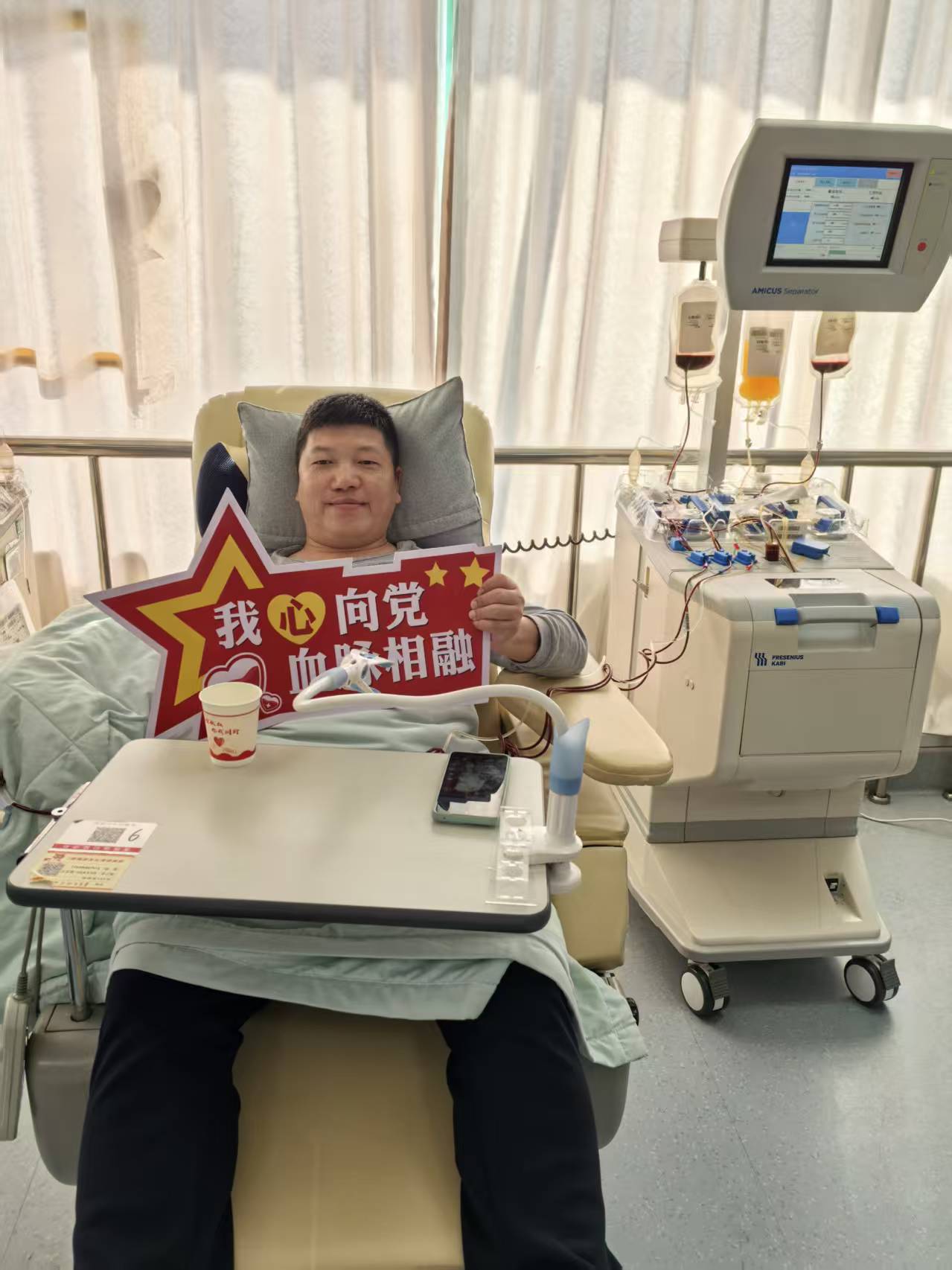 在2012年,带着这份对爱的体悟,他第一次走进献血屋。和许多人一样,心里也曾有过忐忑,但墙上“无偿献血 挽救生命”的标语,让他想到素昧平生的患者正期盼着生的希望,那份忐忑便化作了挽起衣袖的笃定。