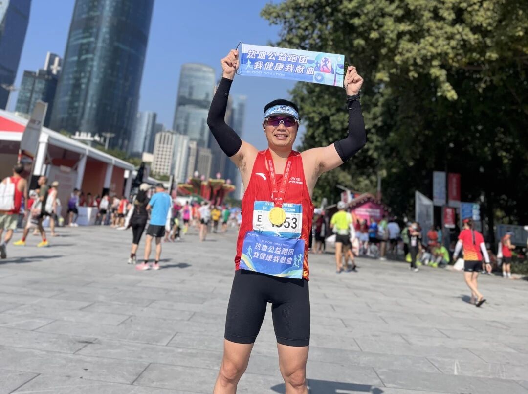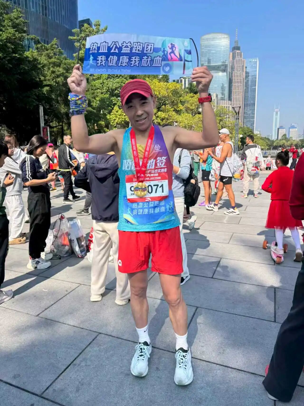 7.熊磊明:“奔跑与献血,是我多年来一直坚持的两件事。在我人生第50场广州马拉松结束后,即将迎来第51场黄埔马拉松,同时我也预约了第45次献血。跑步+献血=生命的双重多巴胺。”