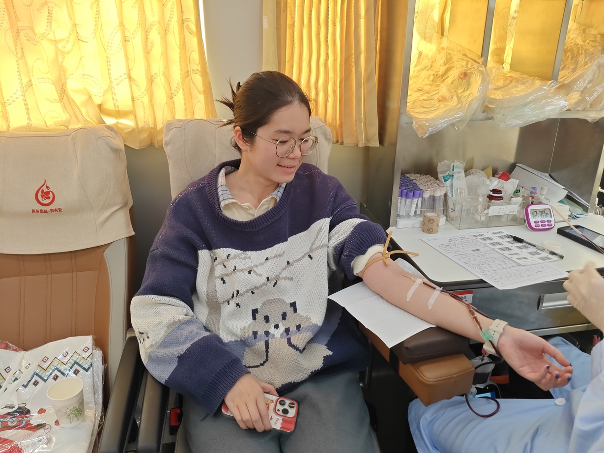 从初次献血的大一新生到带头参与的教职工,从结伴而来的同窗到多次献血的“热血榜样”,大家有序排队、勇敢挽袖,让带着体温的血液缓缓流入血袋。“能用可再生的血液为生命续航,是青春最有意义的担当”,一名刚完成献血的同学手持献血证接受采访,脸上洋溢着自豪的笑容。