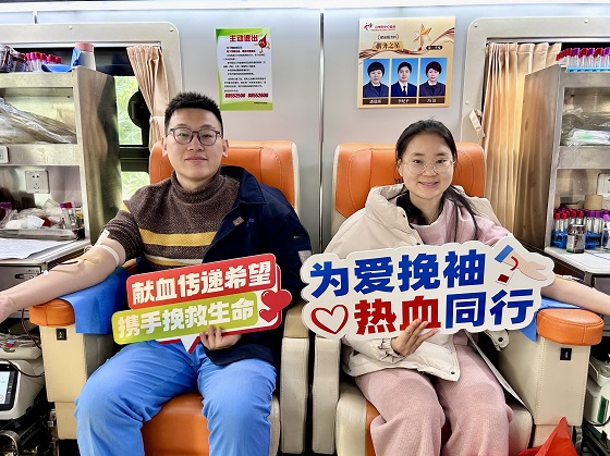 联化科技股份有限公司的唐也和刘凯旋夫妻俩,成为现场一道暖心风景线。“我们平时就关注无偿献血的宣传,一直想参与进来。”唐也笑着说,夫妻俩各自捐献了400毫升血液,还现场留取了造血干细胞标本。“能在新年伊始做一件有意义的事特别开心,希望我们的血液能帮到有需要的人。”