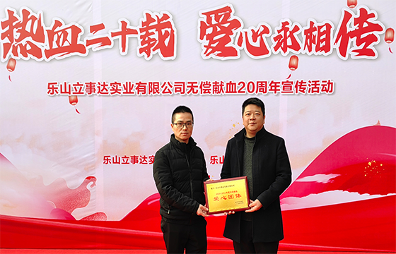 1月14日,在这个充满温情的日子里,乐山立事达实业有限公司无偿献血20周年“热血二十载、爱心永相传”无偿献血爱心公益活动在公司音乐广场隆重举行。自2005年起,乐山立事达实业有限公司连续20年组织员工参与无偿献血活动,累计献血2千余人次,约60多万毫升。