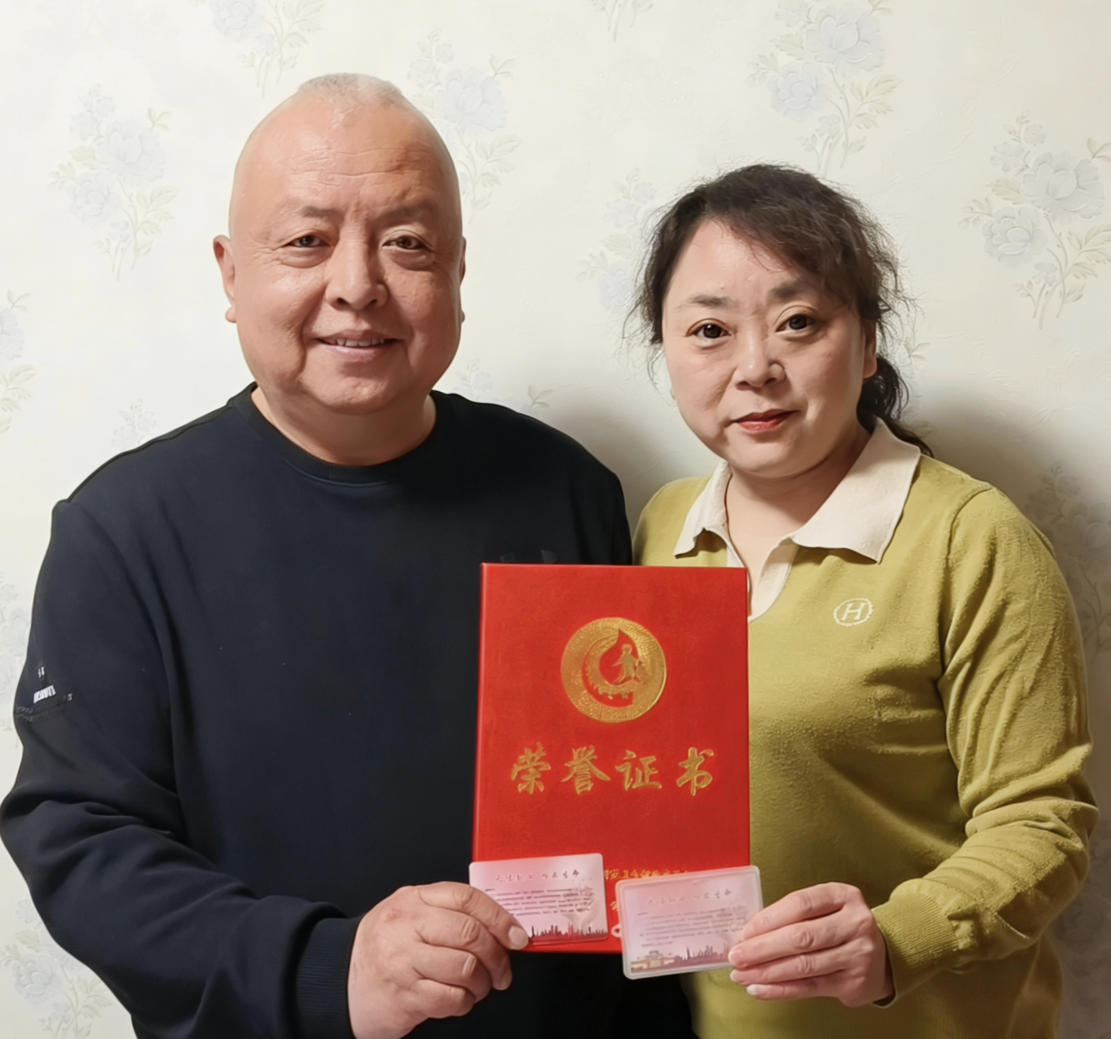 胡润娟的丈夫赵虎群在铁路系统工作,作为医务人员的家属,赵虎群主动承担家务,用行动默默支撑家庭,而他本人也是无偿献血的积极参与者,无论是铁路系统组织的团体献血,还是陪家人自行前往献血点,他累计献血量已达8000毫升,已经荣获全国无偿献血奉献奖银奖和铜奖。