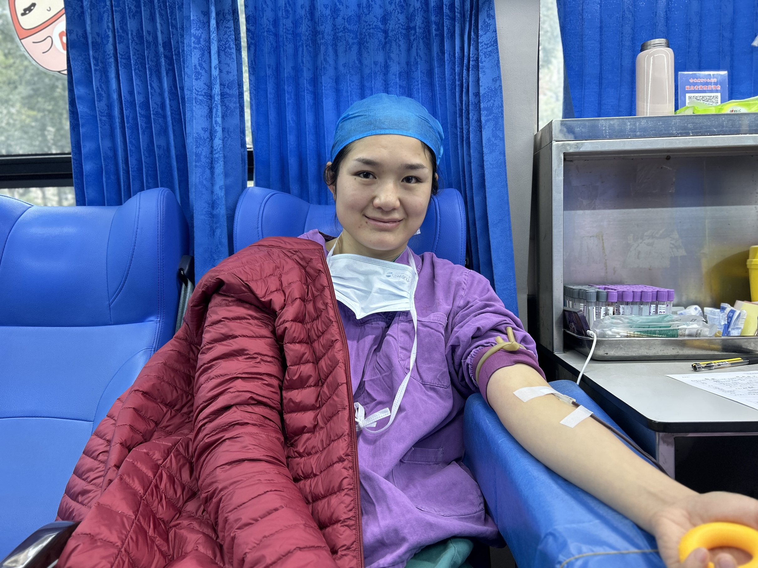 作为守护生命的“一线战士”,医务人员对血液的珍贵有着最深刻的体悟,即便寒潮肆虐,他们仍是应急献血现场当之无愧的主力军。手术室医护人员刚结束紧急手术,来不及卸下疲惫,裹紧棉衣便直奔献血点,“临床用血就是命令,我们多献一袋,患者就多一份希望”;内科、外科、妇产科等临床科室的医护骨干,克服严寒阻碍,合理调配工作时间,在接诊、查房的间隙分批赶来,挽袖、消毒、抽血一气呵成,用熟练动作践行“医者仁心”;值夜班的年轻护士也抓紧换岗间隙参与献血,献完即刻返回岗位坚守,以“连轴转”的担当诠释应急本色。科室同事相互协调、彼此补位,既保障日常诊疗有序开展,又高效完成献血任务,让“应急”二字在默契配合中落地生根。