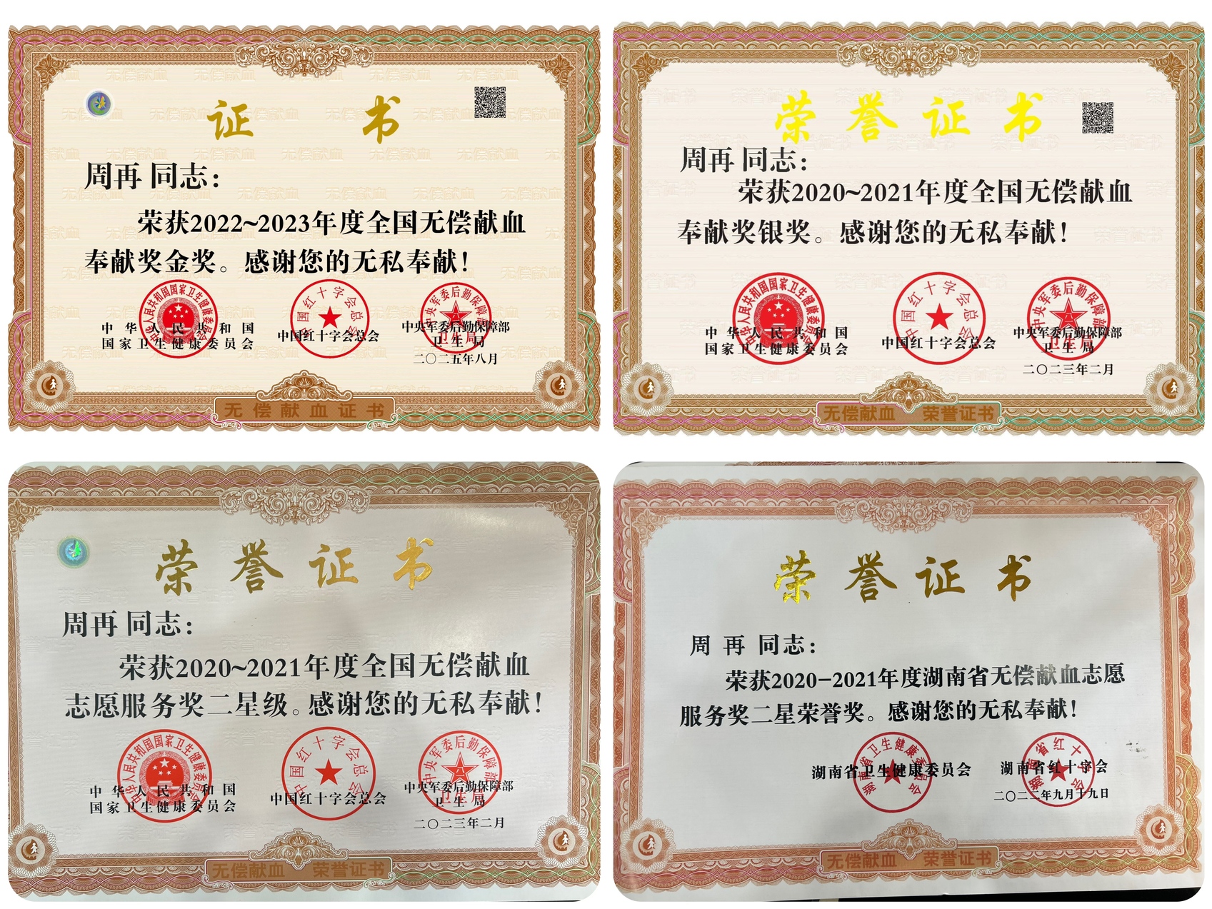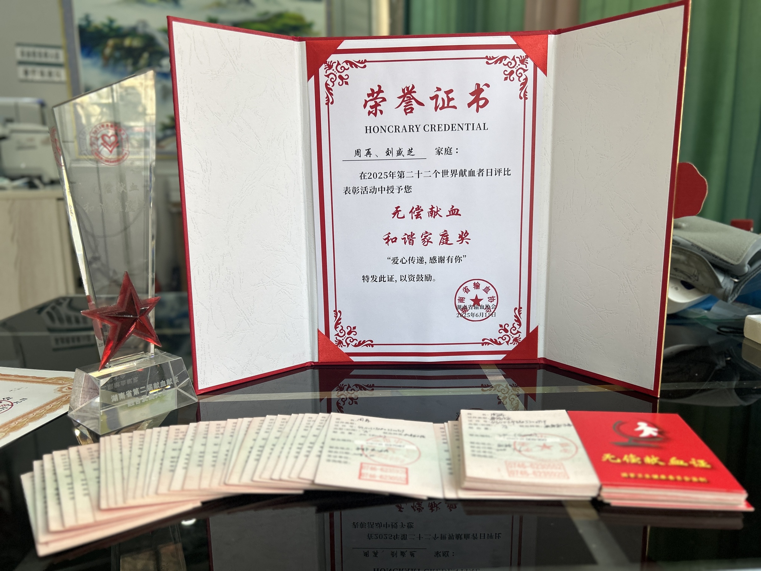 时光不语,自会留痕;善行不辍,终有回响。十八年的无私奉献,让他收获诸多荣誉:2020-2021年度全国无偿献血奉献奖银奖、2022-2023年度全国无偿献血奉献奖金奖,以及全国及省无偿献血志愿服务二星级、2025年度无偿献血和谐家庭奖、单采血小板献血之星等称号。每一项荣誉,都是对他长久坚守的最好褒奖。