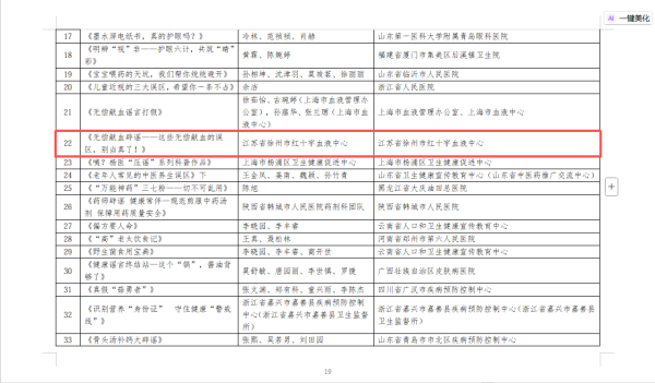 近日,由国家卫生健康委、国家中医药局、国家疾控局、全国总工会、中国科协共同组织开展的“健康知识普及行动——2025年新时代健康科普作品征集活动优秀作品”评选结果揭晓,徐州市血液中心一项作品获辟谣类优秀作品。