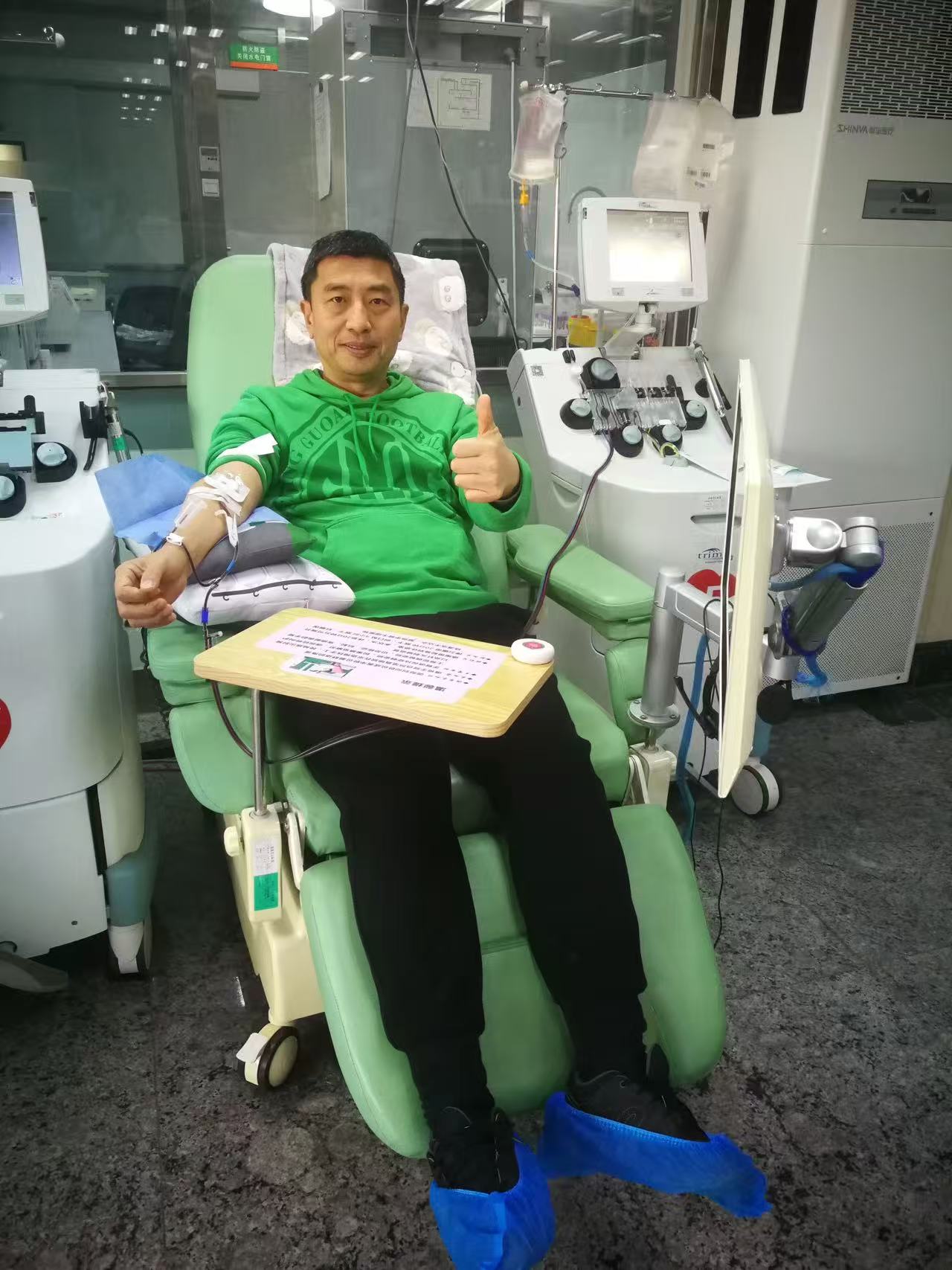 另一位RhD阴性血献血者李忠接到电话时,正送孩子去课外班,他将孩子送回家安顿好后,马不停蹄地赶往市血液中心捐献血小板。此前,他已累计捐献血液4600毫升、荣获过全国无偿献血奉献奖铜奖。