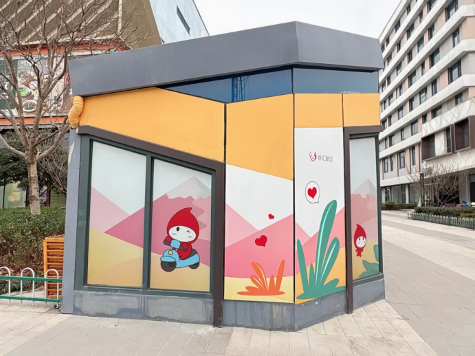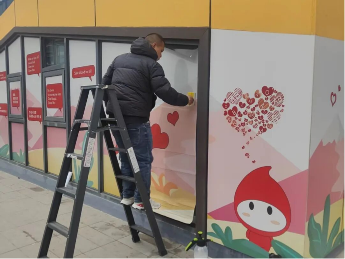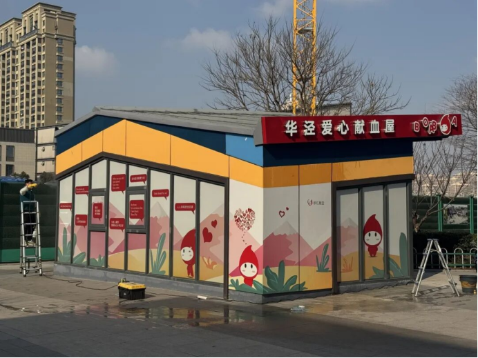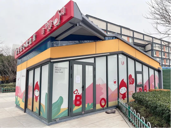 徐汇华泾爱心献血屋完成焕新升级啦!这座扎根华泾的暖心站点,焕然一新,以明快的暖黄色为主色调,搭配粉、绿、白等柔和色彩,打造出充满活力的视觉效果。“捐献热血,分享生命”“Safe blood saves lives”等中英双语标语,在醒目的红色对话框设计中格外亮眼。俏皮可爱的“徐汇献血小血宝”,跃然于新贴膜与灯箱之上,或微笑挥手,或托举爱心,邀请每一位爱心人士走进这座“热血补给站”,以一腔赤诚传递申城温情。