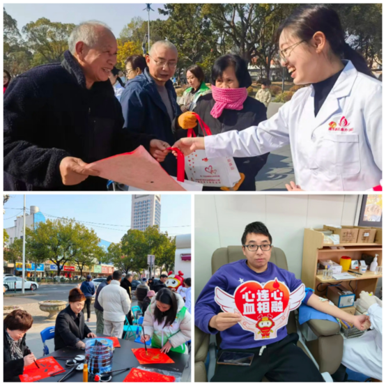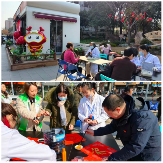 活动现场氛围热烈、年味浓厚。大家以“服务群众、凝聚爱心”为出发点,围绕居民实际需求,设置了多项便民与科普服务:一是开展免费测血压,引导居民关注日常健康管理;二是组织写春联、送祝福活动,邀请周边居民一同参与,把“福”带回家;三是开展无偿献血科普宣传,通过发放宣传资料、面对面讲解等方式,向居民普及献血知识、献血流程与注意事项,帮助大家消除疑虑、树立科学认知;四是提供健康咨询服务,耐心解答群众关于健康生活方式与献血相关问题,倡导科学、健康、互助的生活理念。