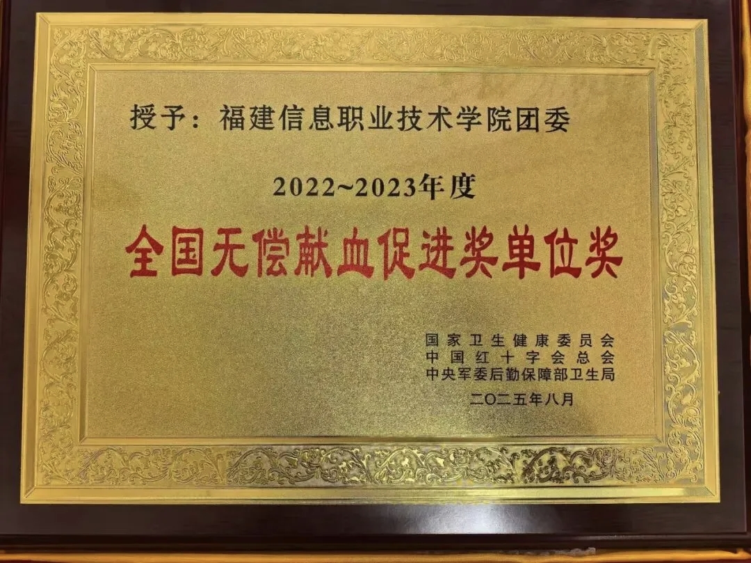 福建信息职业技术学院荣获全国无偿献血促进奖单位奖,用热血诠释青春担当