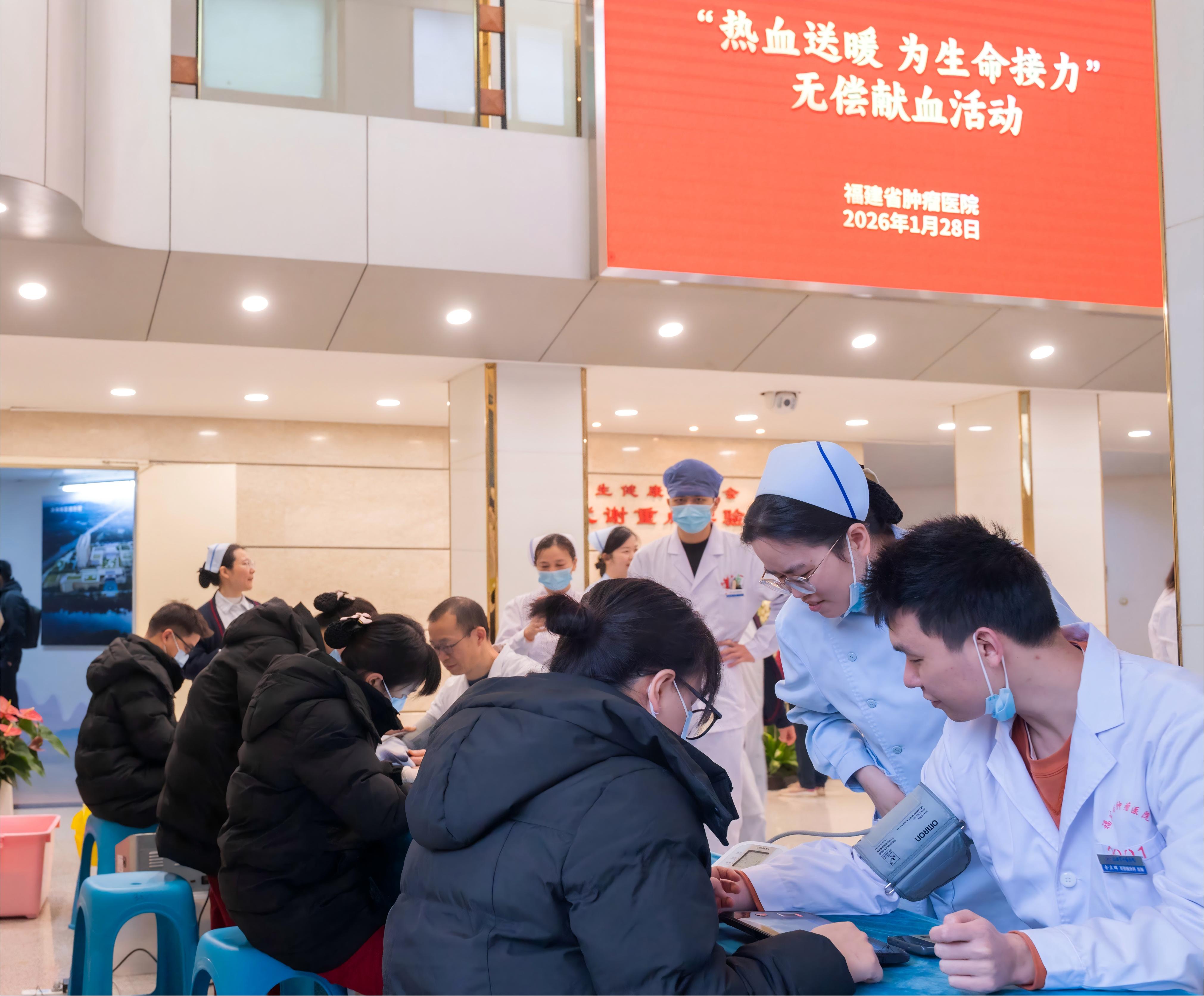 2026年1月28日,福建省肿瘤医院举办“热血送暖 为生命接力”无偿献血活动,用实际行动为生命续航。