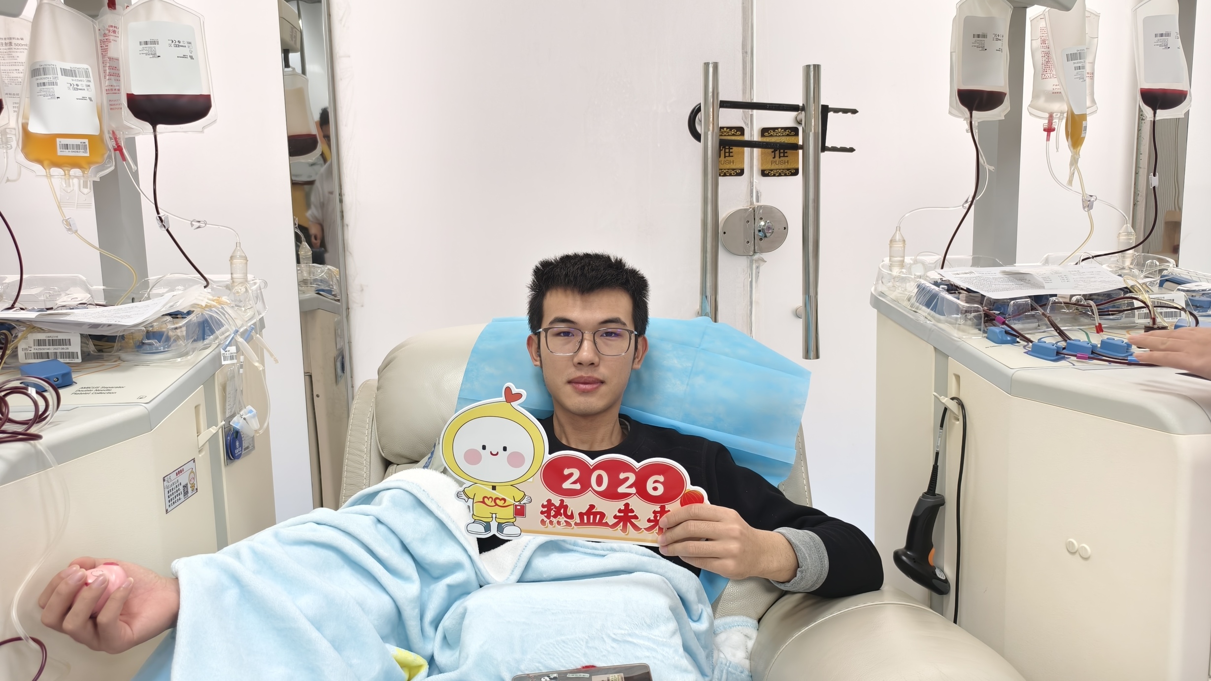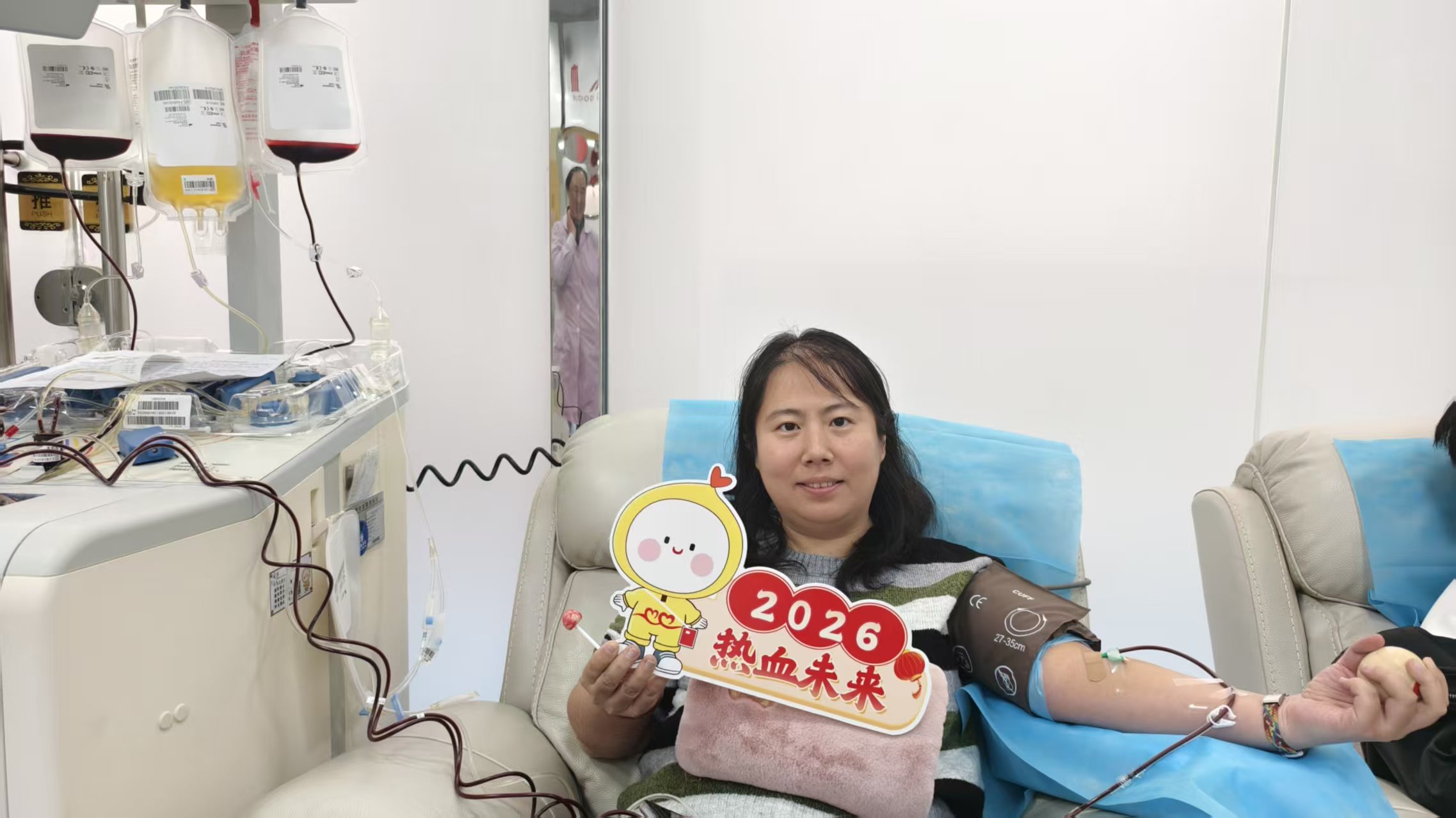 最动人的,是他们从不刻意宣扬,却以润物无声的方式照亮了周围。同事盛康宁和龙飞第一次走进机采大厅,只因苏明平常的一句邀请:“周末我去献血,要不要一起去看看?”没有刻意的动员,只是真诚的分享与全程的陪伴。而在范萌细致的经验分享和轻声鼓励下,他们渐渐放下了最初的紧张,完成了人生第一次献血。