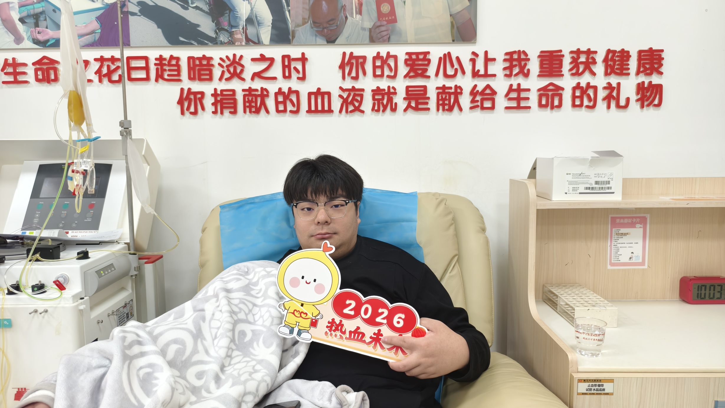 丈夫苏明是家中最先挽起衣袖的那一个。怀着对生命最本真的敬畏,他将献血自然而然地融入自己的生活节奏。21年间,他累计捐献全血2400毫升、单采血小板50个治疗量。数字背后,是数十年如一日的自律与坚持,更是对“一袋血或许就能挽救一个生命”这份信念沉默而有力的守护。在他的带动下,范萌也从最初的默默关心,渐渐转变为行动上的支持,最终坦然伸出手臂,加入了无偿献血的队伍。两人时常并肩走进机采大厅,将彼此的陪伴化作守护生命的温暖仪式,成为献血站里人所熟知的“爱心搭档”。