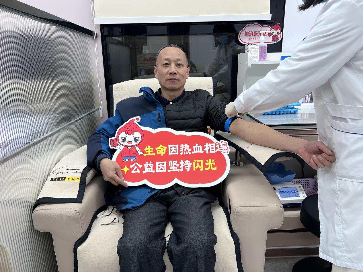 2006年,宋华文就以献血者的身份第一次挽起了衣袖。回忆起当时的场景,他笑着说:“第一次献的是成分血,当针头扎进去的时候,心里还是有点紧张,但想到自己献的血能救别人,那种紧张感一下子就没了,反而觉得特别光荣。”从那以后,他便与无偿献血定下了一个约定,只要献血间隔期一到,他总会准时出现在献血点,有时候是在乡镇采血点,他就在岗位上完成捐献;有时候是休息时间,他便打车赶到献血屋捐献。20年来,宋华文已累计献血54次,总量达16000毫升,并先后获得“全国无偿献血奉献奖”金、银奖等荣誉。他常说:“我在血站工作,比别人更懂血液的珍贵。能通过自己的血液帮助别人,是这辈子最有意义的事。”这份坚持,让他成为血站同事心中的榜样,也带动了身边不少亲友加入无偿献血的队伍。