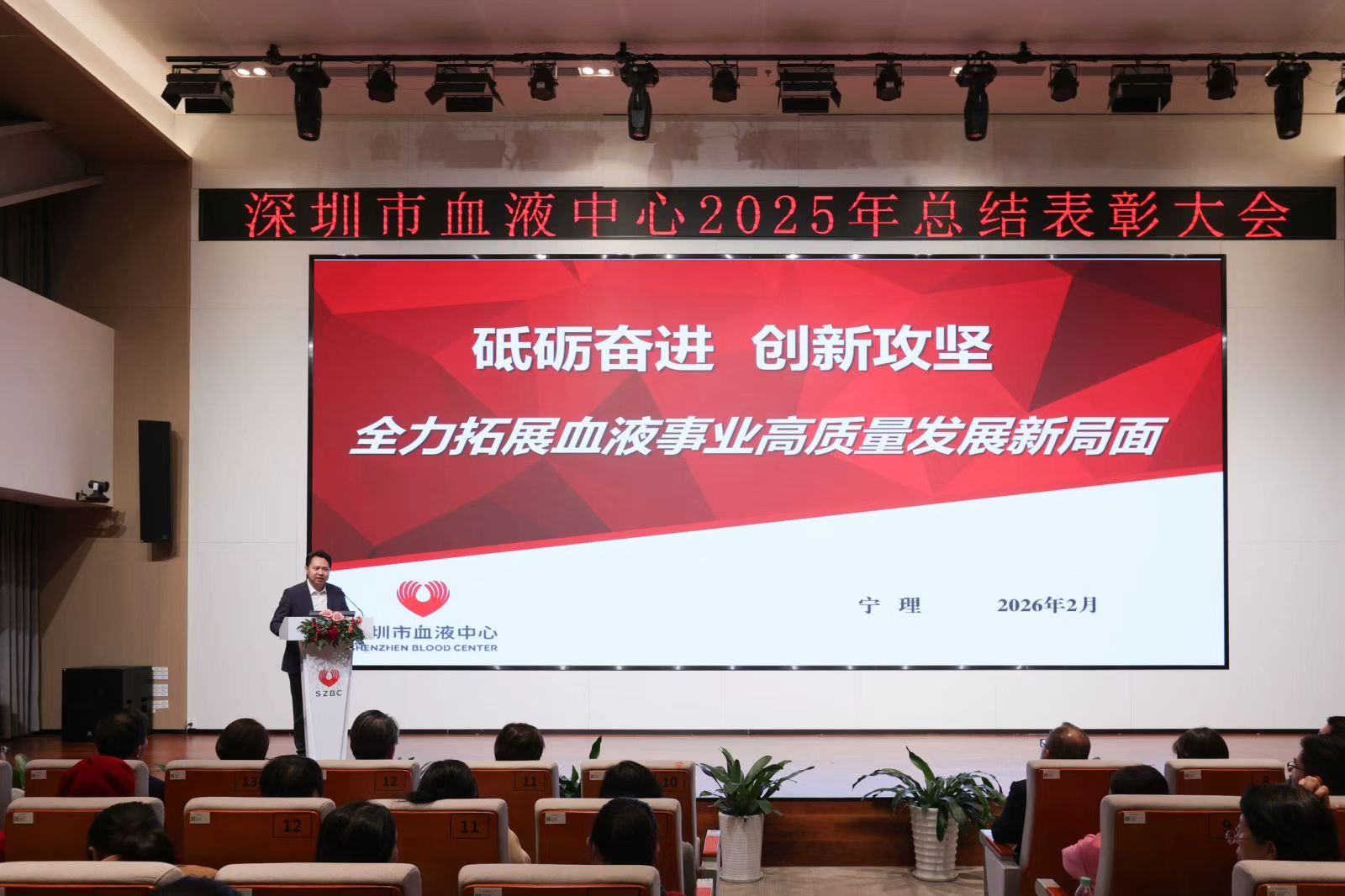 2月6日晚,市血液中心举行2025年度总结表彰会。中心党委书记、主任宁理作年度总结报告。