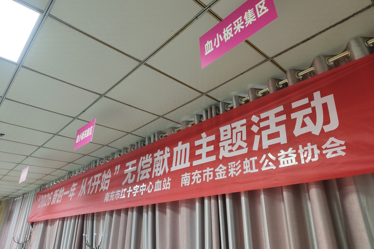 2026年1月1日,金彩虹志愿者群聚南充市红十字中心血站机采大厅,用座谈会、文艺表演、献血等方式开启2026年无偿献血第一天。该次活动是由南充市红十字中心血站和南充市金彩虹公益协会联合举办的。