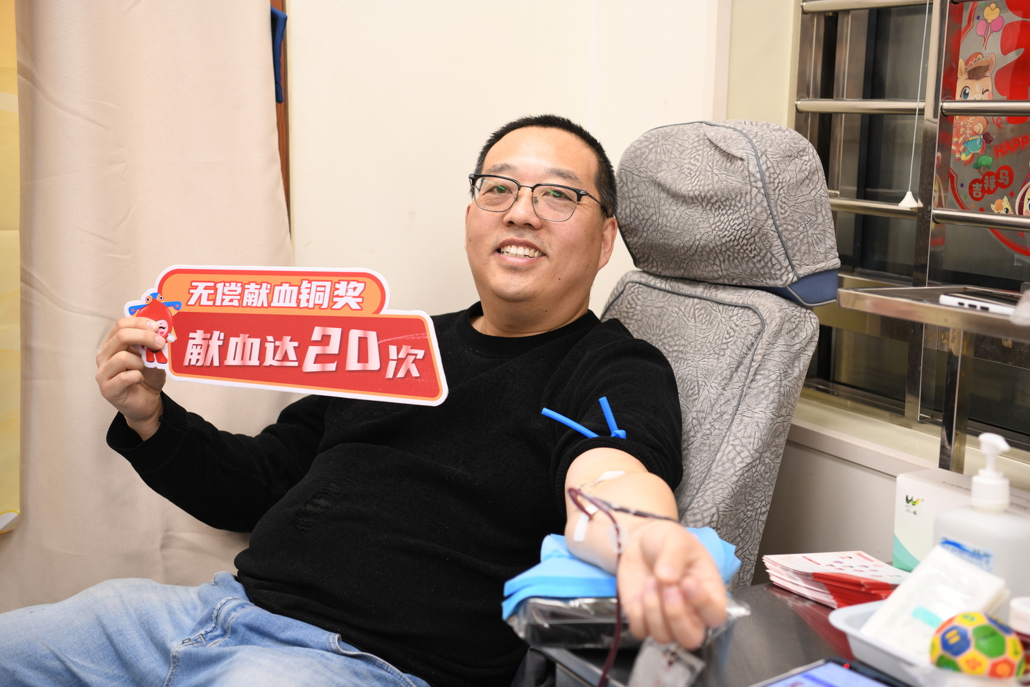 在轻松愉快的氛围中,王洪卫再次完成献血,累计献血量已达7600毫升。凭借这份持续的爱心,他荣获奉献奖银奖。他微笑着表示:“很荣幸能获得这份国家级荣誉,这是对献血者的肯定。我将继续传递善意,帮助更多需要的人。”