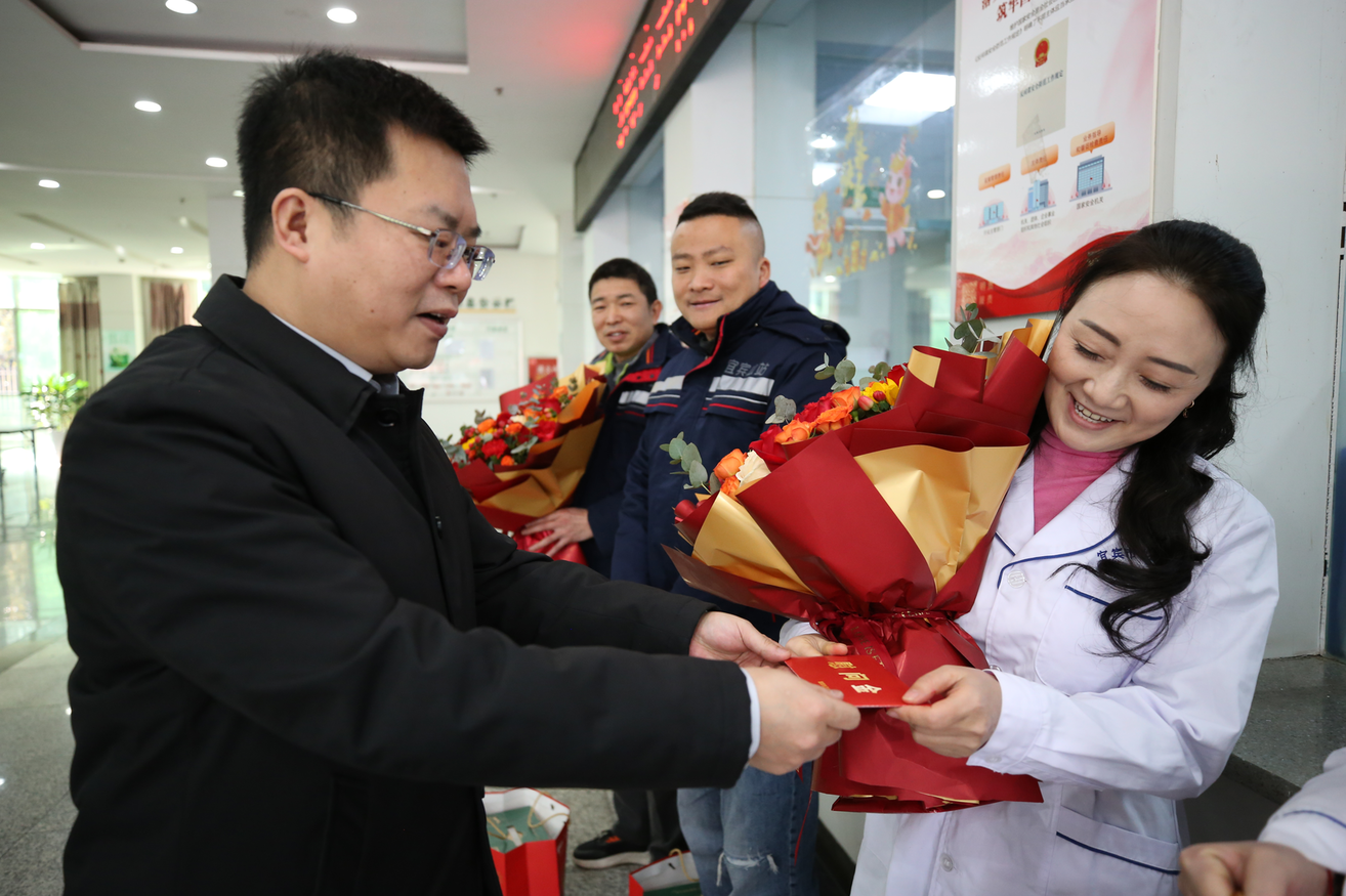 在新春佳节即将来临之际,2月14日,宜宾市卫生健康委党组书记、主任何江一行来到市中心血站,亲切看望慰问坚守在采供血一线的干部职工,对他们一年来的辛勤付出表示充分的肯定,并致以诚挚的新春祝福和节日问候,血站领导班子陪同慰问。