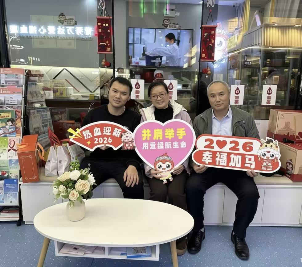 春节将至,年味渐浓,南宁市青秀万达爱心捐血屋内暖意融融。市民黄廷光、李智夫妇携儿子黄实磊一同前来参与无偿献血,三人各捐献400毫升血液,一共1200毫升,用实际行动传递爱心,为新春增添了温情底色。