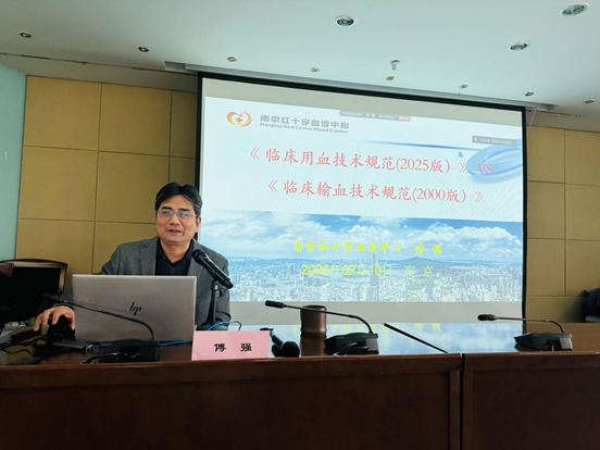 为继续落实南京都市圈血站高质量发展合作协议,切实增强都市圈内采供血机构从业人员综合素质,大力促进优质培训资源共享,中心于2月10日下午两点在七楼报告厅举办2026年第二期南京都市圈血站培训。本次培训邀请中心党委书记傅强授课,授课主题为“《临床用血技术规范(2025版)》VS《临床输血技术规范(2000版)》”,中心主任张春主持本次培训。