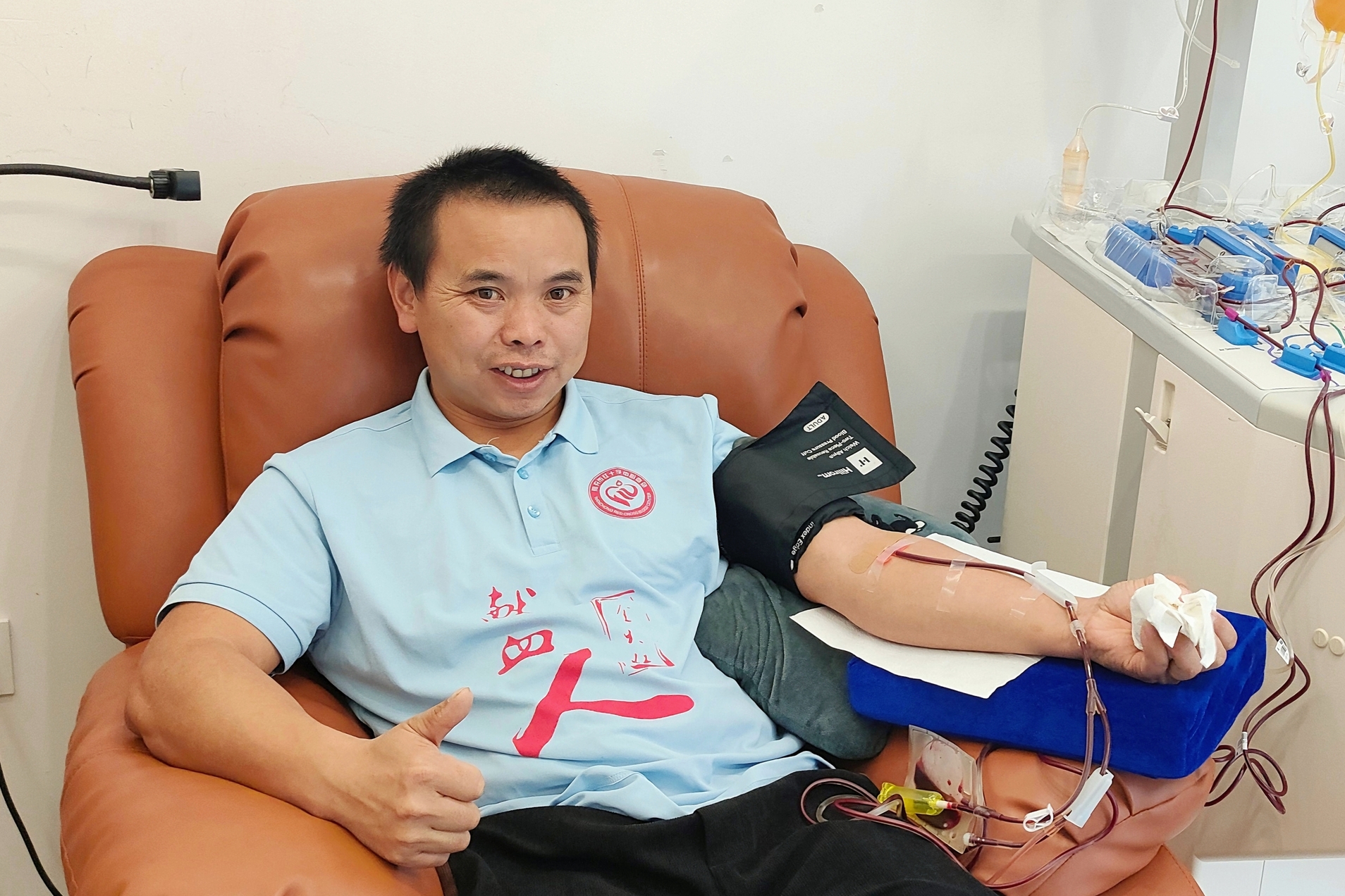 (图为徐俐江正在捐献血小板)