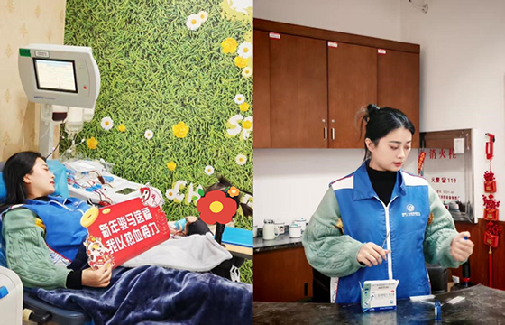 “春节期间是临床用血高峰期,作为血站人,我想给孩子做个榜样,也想用自己的热血为生命护航。”全血献血服务部孙龙凤带着孩子到献血点参加志愿服务并献血