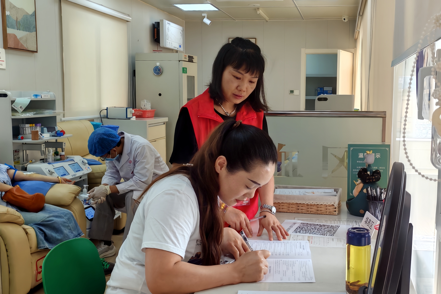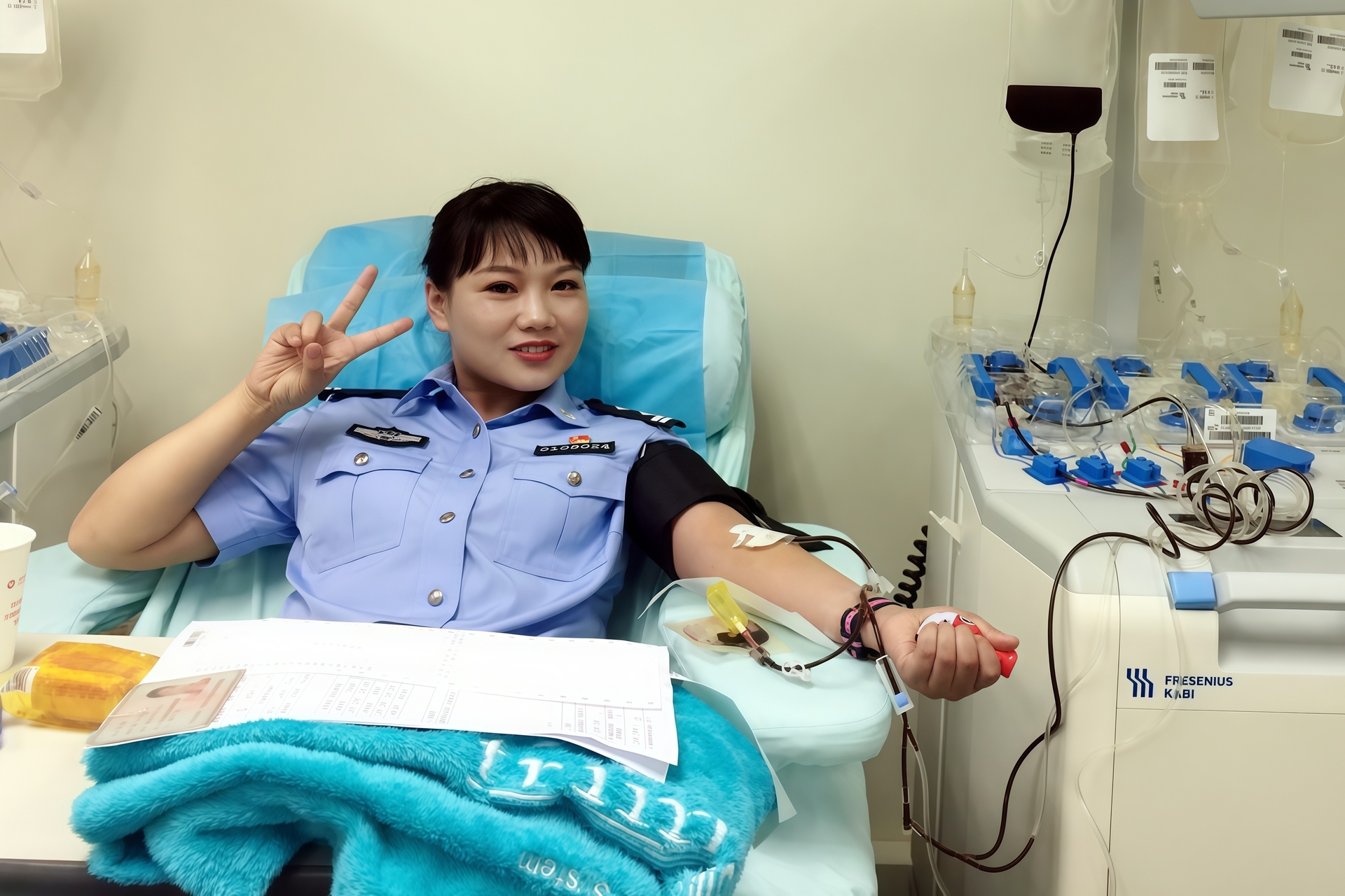 (王萍正在捐献血小板)