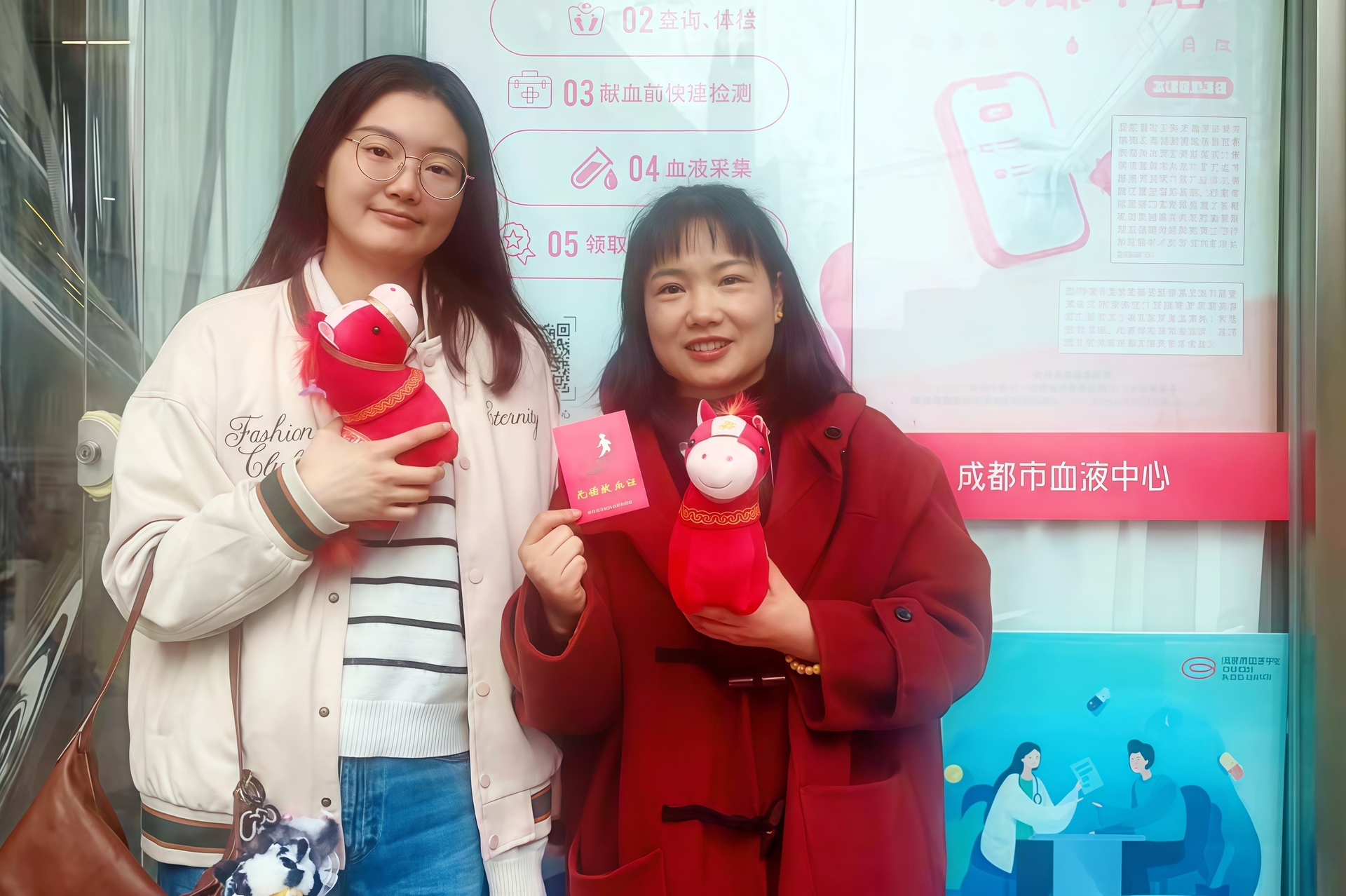 (王萍与女儿一起献血后的合影)