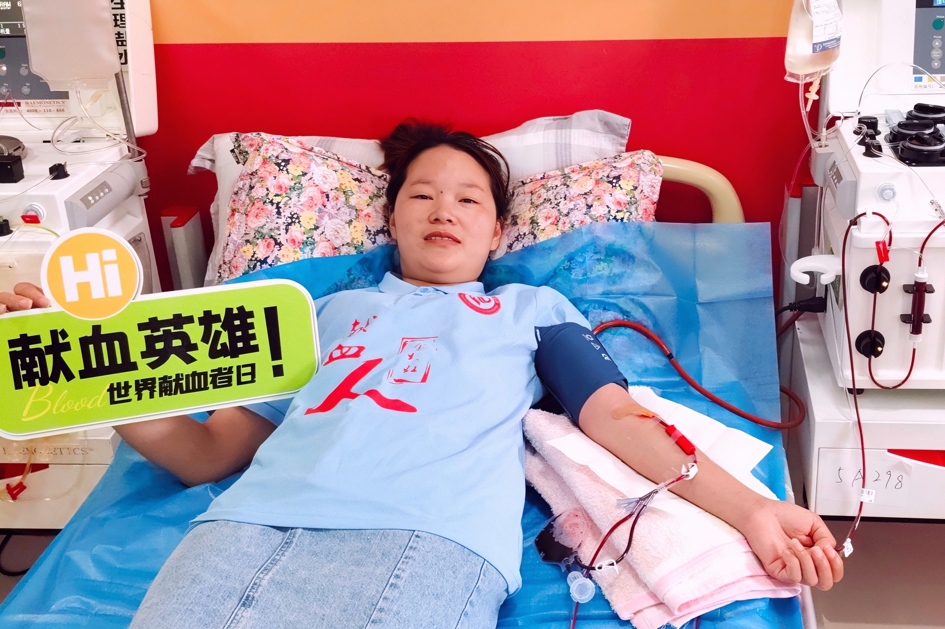 (李安桂在四川南充市中心血站捐献血小板)