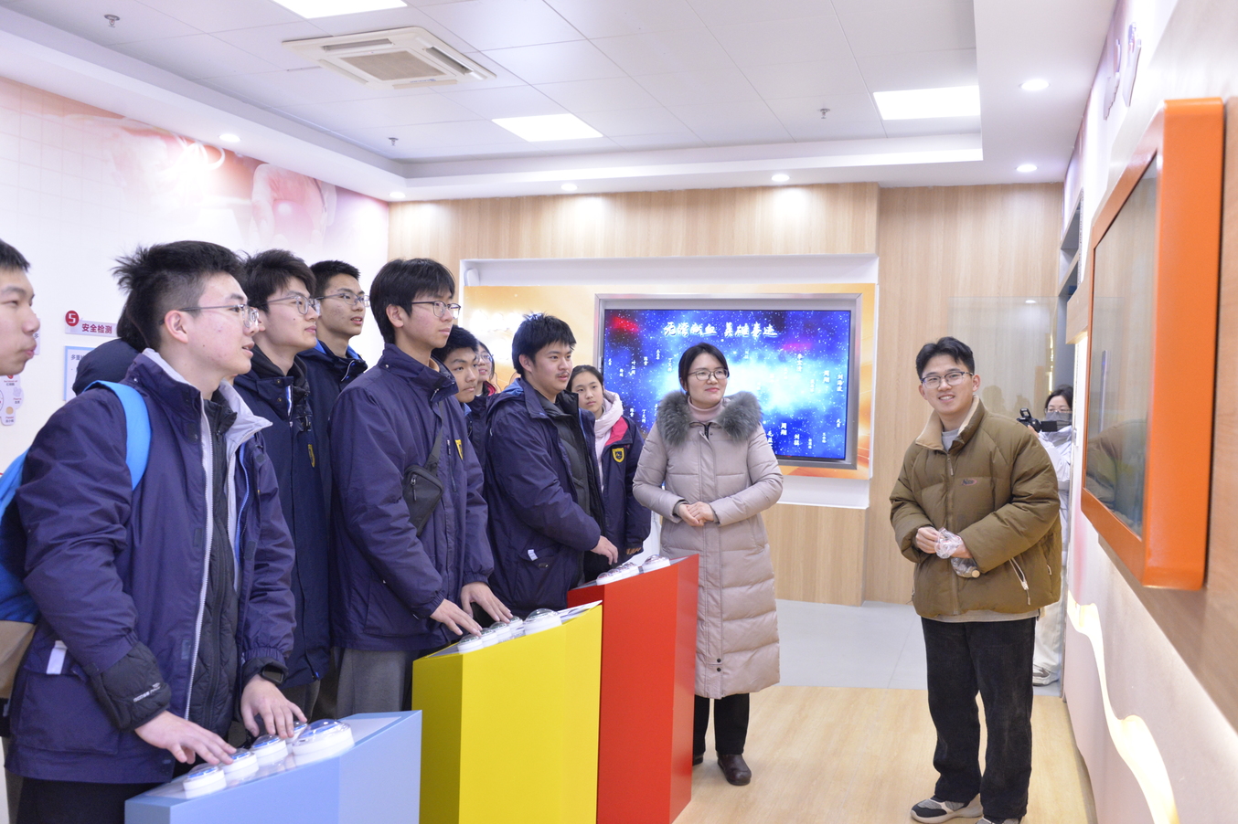 在无偿献血科普馆,讲解员以生动易懂的方式,为同学们揭开了血液的奥秘。从血液的组成与功能、血型的遗传规律到输血技术的发展历程,再到无偿献血的政策与意义,同学们听得聚精会神,不时举手提问,现场气氛热烈。在5D 影院,同学们“钻进”血管,在微观的世界里与血细胞同行。知识抢答环节,更是将气氛推向高潮,同学们争相抢答,巩固了所学知识。