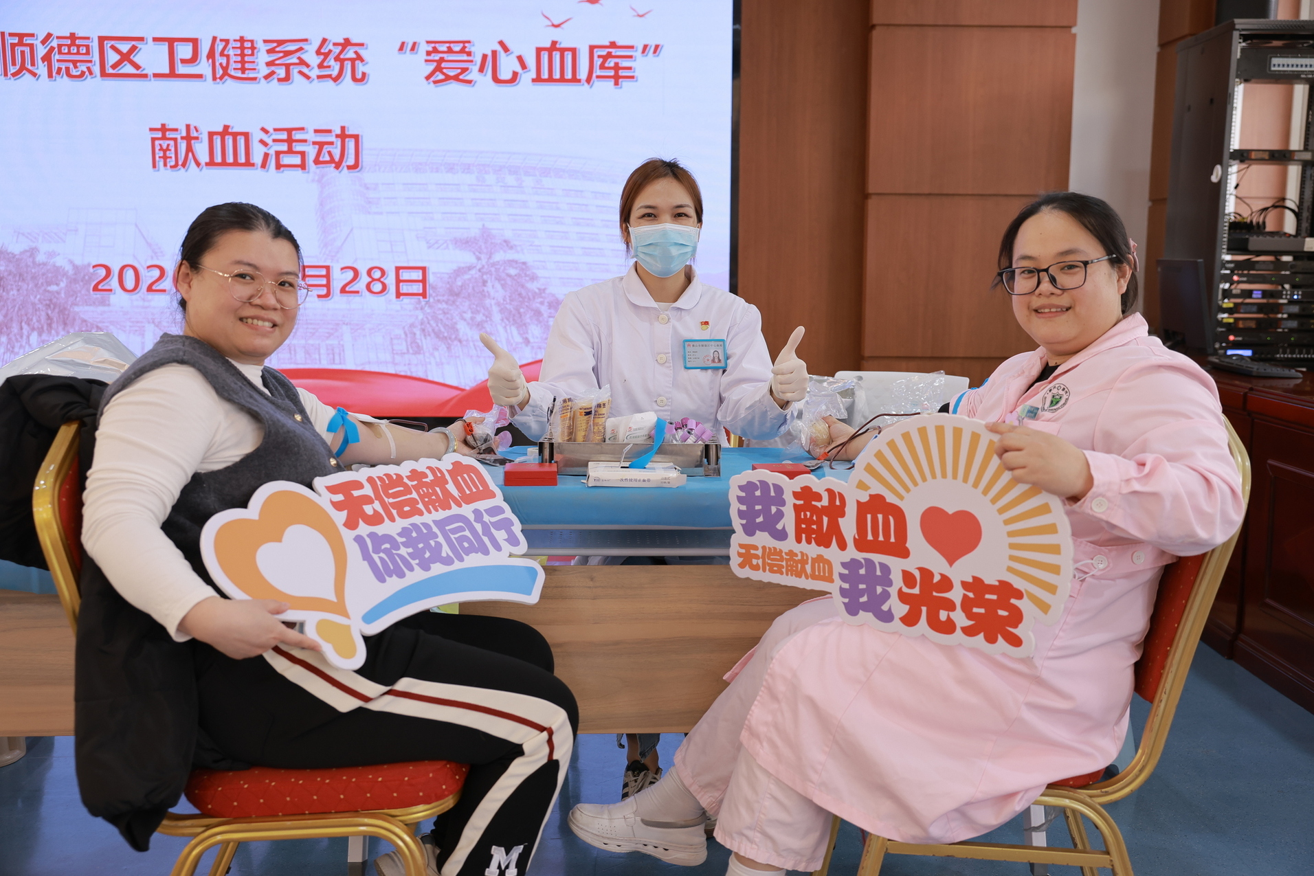 活动现场,乐从医院党委书记郑华婴、副院长潘俊好率先挽袖献血。他们表示,对医务工作者而言,无偿献血不只是一种公益行为,更是一份义不容辞的责任。