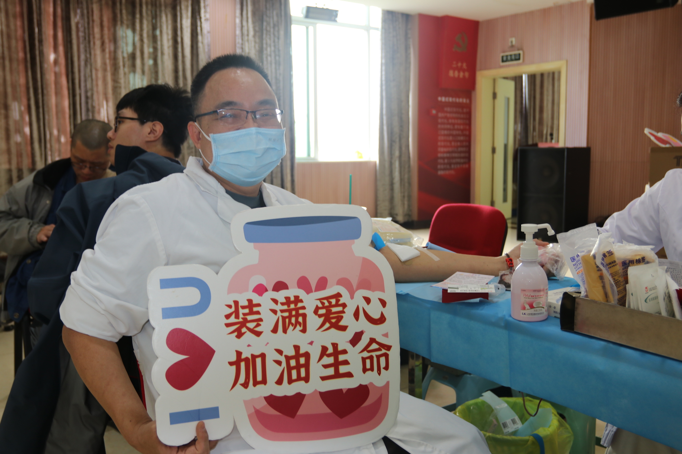 献血现场,普外科护士长刘雪宜一家的身影显得格外暖心,她特意带上丈夫与儿子一同前来:夫妻二人自大学时起便坚守献血初心,将爱心悄然融入日常;如今儿子恰逢成年,亦紧随父母脚步,以热血传递赤诚善意。两代人热血接力,彰显医者使命担当,这份家庭的温暖传承,用实际行动深刻诠释了无偿献血的真谛,让爱与希望在血脉中代代延续。
