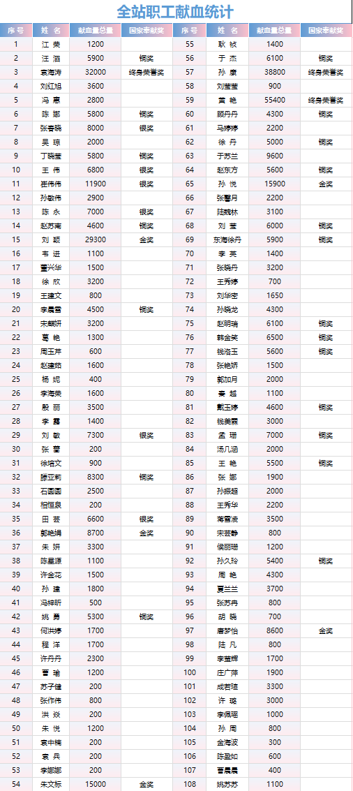 2月11日上午,市中心血站的献血大厅里异常热闹,一群特殊的献血者正有序排队,等待献血,他们都是“血站人”。翻开血站人的献血记录,翻开血站人的献血记录,你会看到一排排工整的数字,这不是一次团体组织、一时冲动,而是长期坚持。血站现有职工116人,其中参与无偿献血的有108人,职工献血比例达93%,总献血量达496550毫升,其中全国无偿献血终身荣誉奖3人。