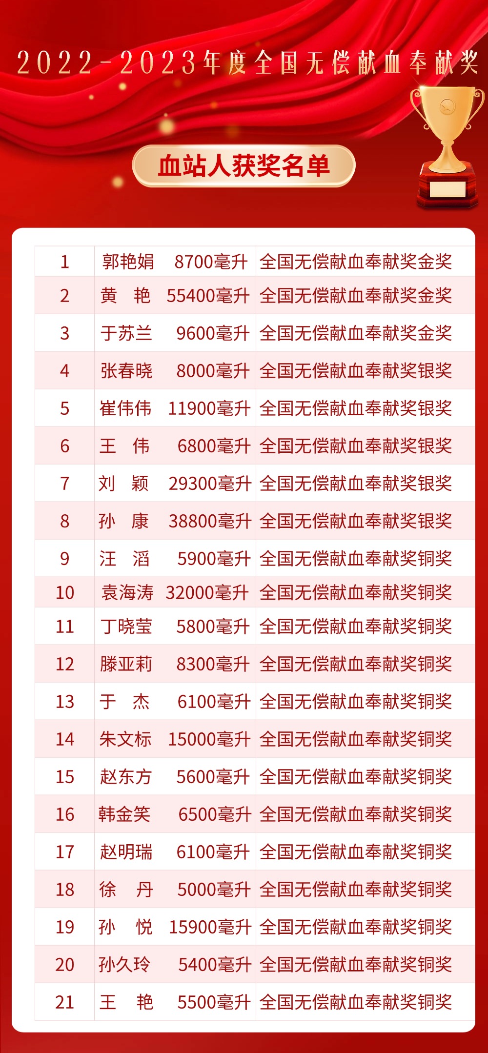 特别值得庆贺的是,在2022-2023年度全国无偿献血奉献奖名单中,连云港市中心血站多名员工光荣上榜!每一张证书背后,是数年甚至数十年的坚持。
