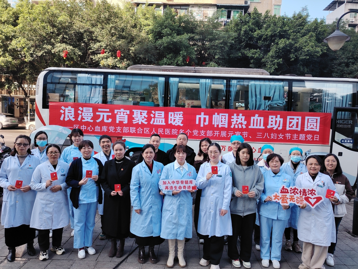 3月4日,区中心血库党支部联合区人民医院多个党支部开展“浪漫元宵聚温暖,巾帼热血助团圆”元宵节、三八妇女节无偿献血活动。